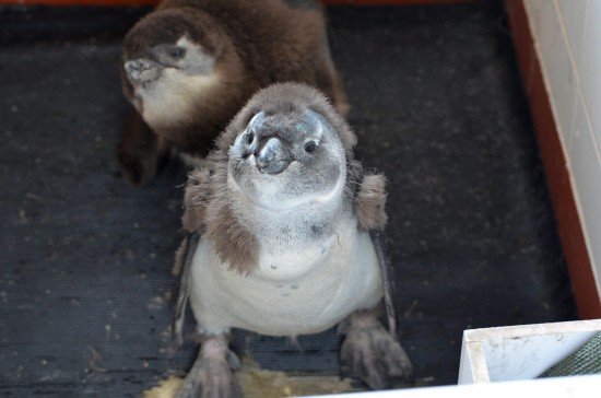 I due cuccioli sono stati abbandonati appena otto settimane dopo che i loro genitori non sono riusciti a dare loro da mangiare correttamente. Si tratta di pinguini africani dai piedi neri in via di estinzione: i custodi hanno dato loro piccole porzioni di pesce due volte al giorno ed hanno monitorato regolarmente i loro progressi.