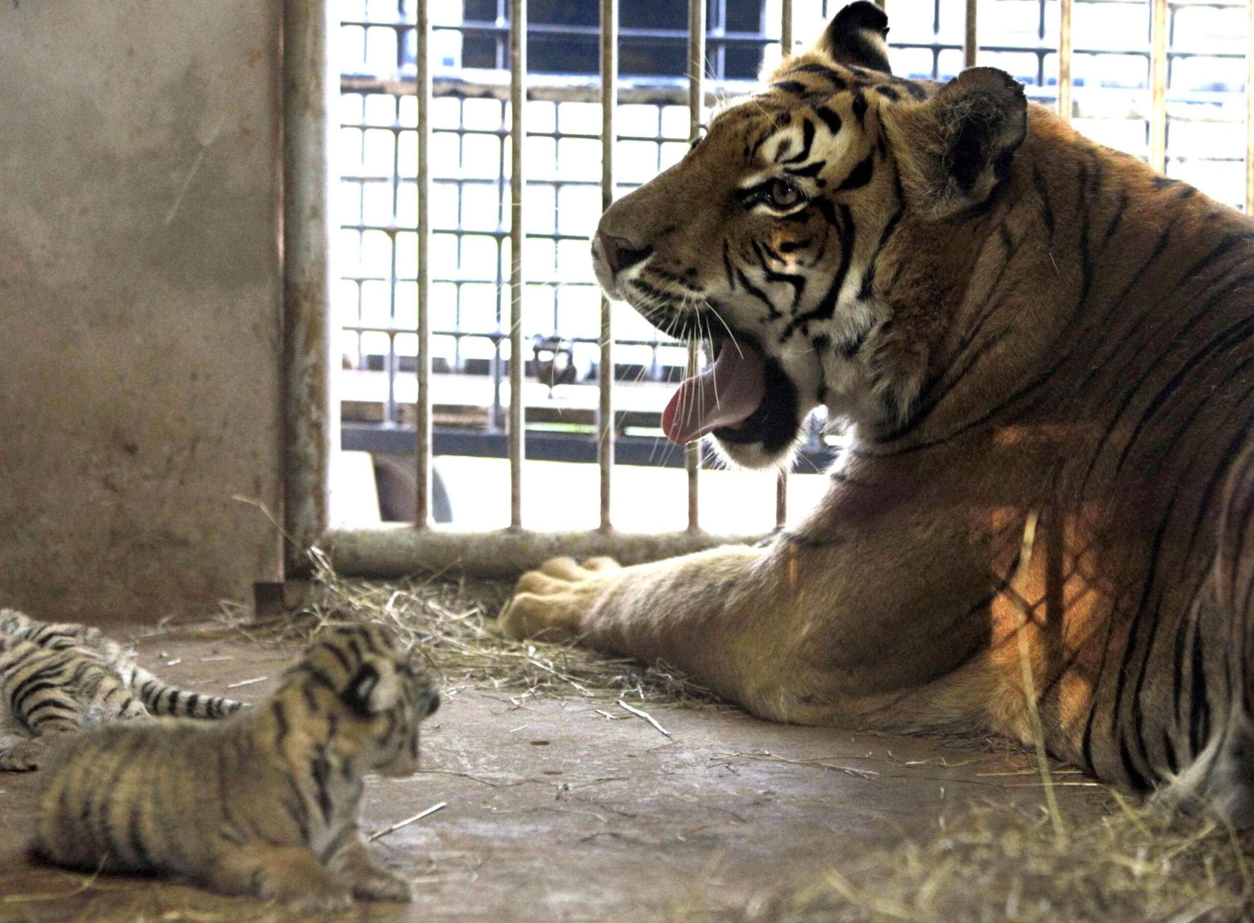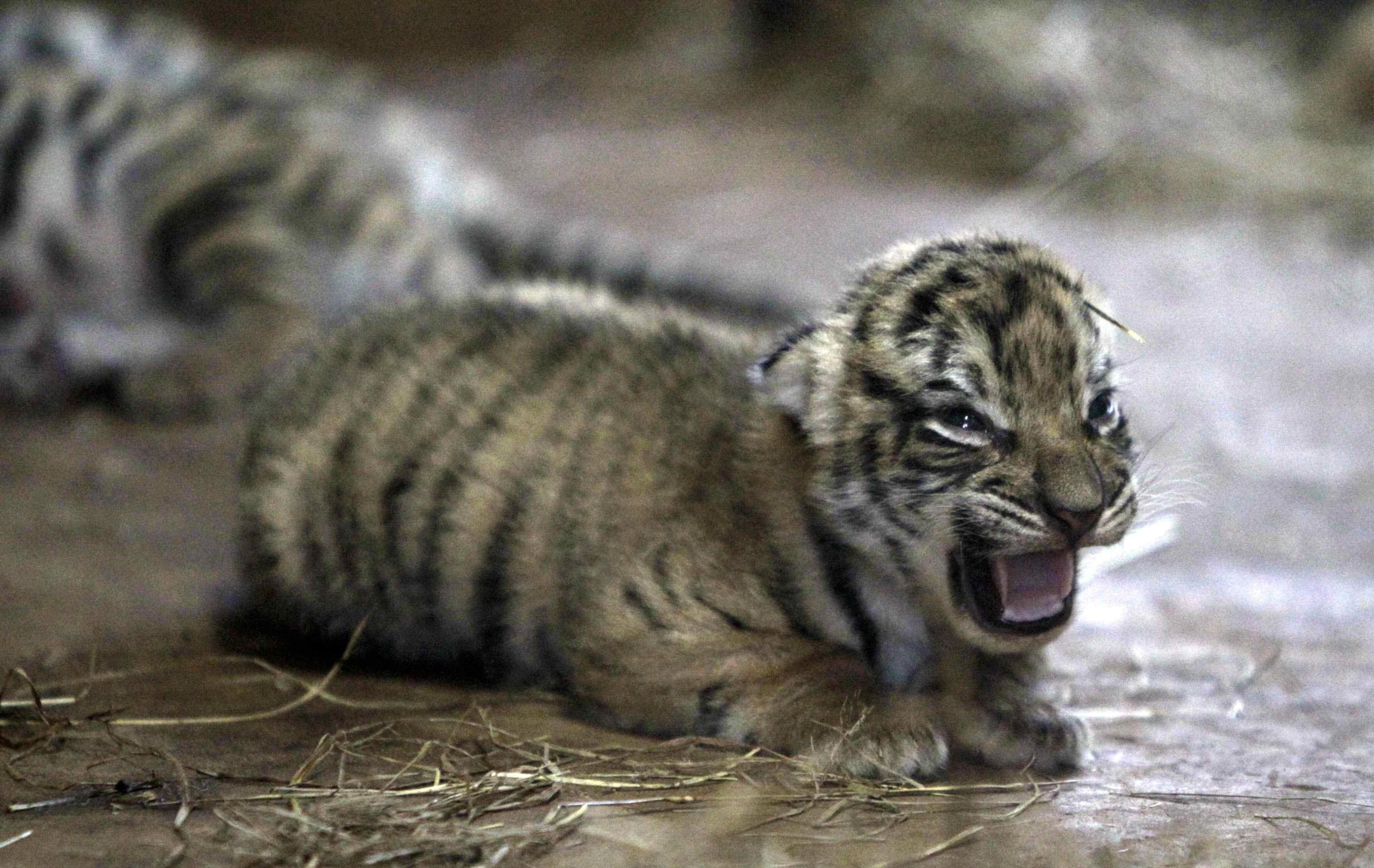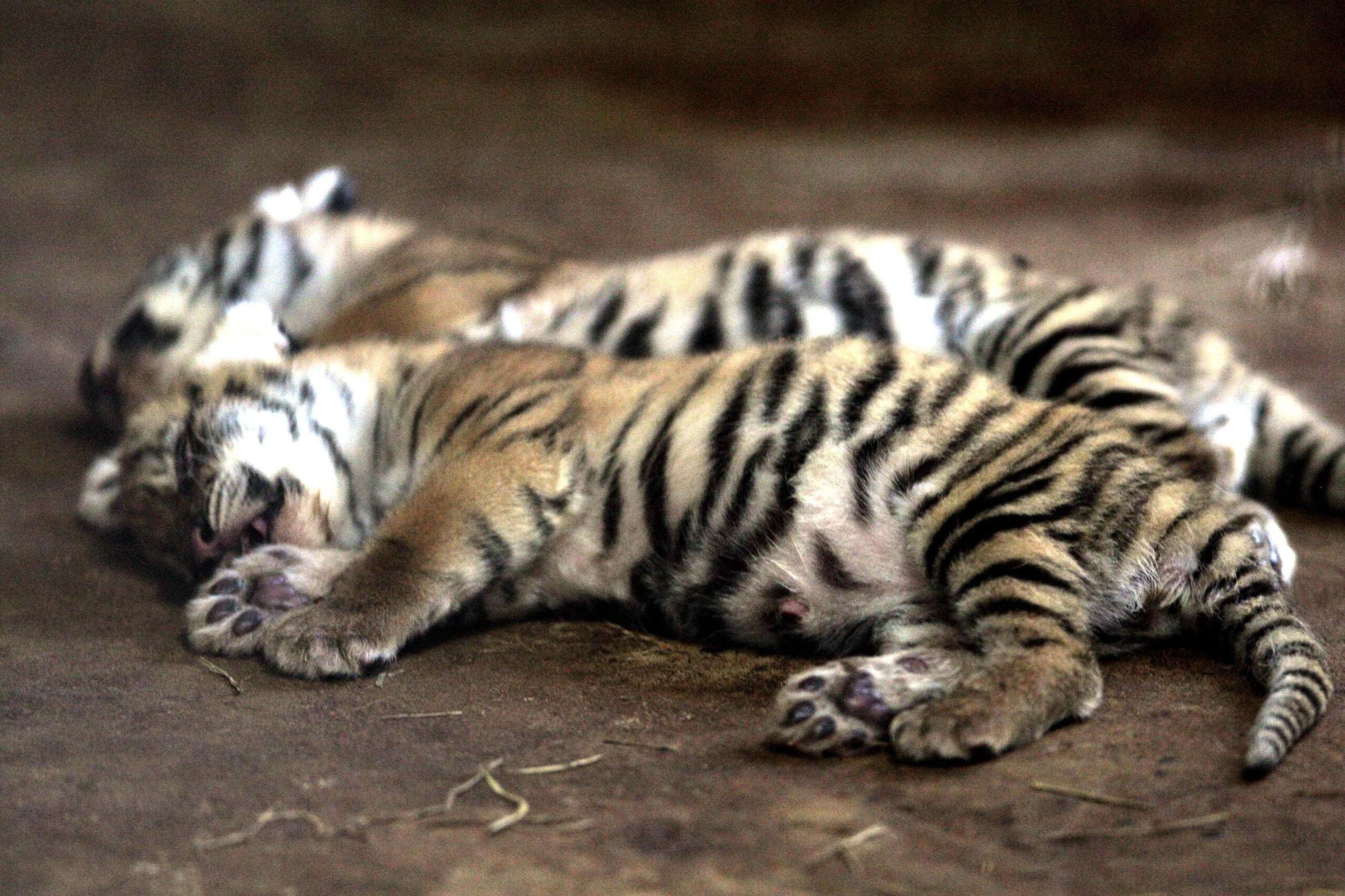 Nelle foto pubblicate dall’Epa, i tigrotti fanno i loro primi ruggiti.