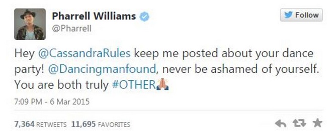 La presa in giro non è passata di certo inosservata. La storia è infatti diventata virale grazie a Cassandra Fairbanks, una ragazza californiana che si è messa sulle sue tracce e le dichiarazioni di solidarietà verso questa persona si sono moltiplicate. Su Twitter è partita una sorta di “caccia” per identificare l’uomo attraverso l’hatag #FindDancingMan con lo scopo di organizzare una festa a lui dedicata.