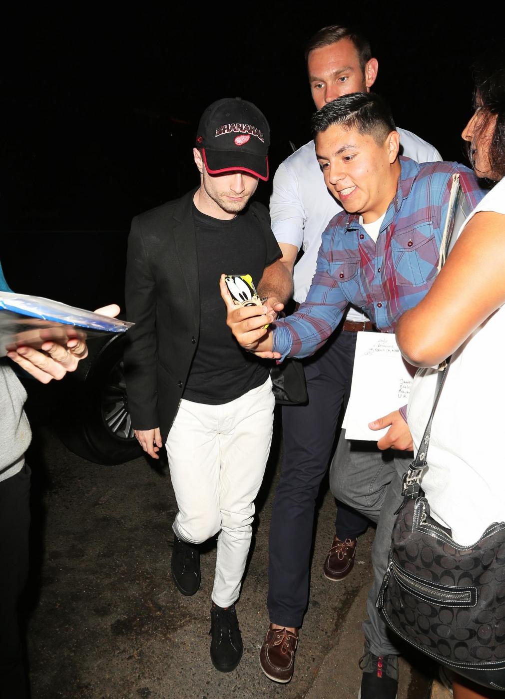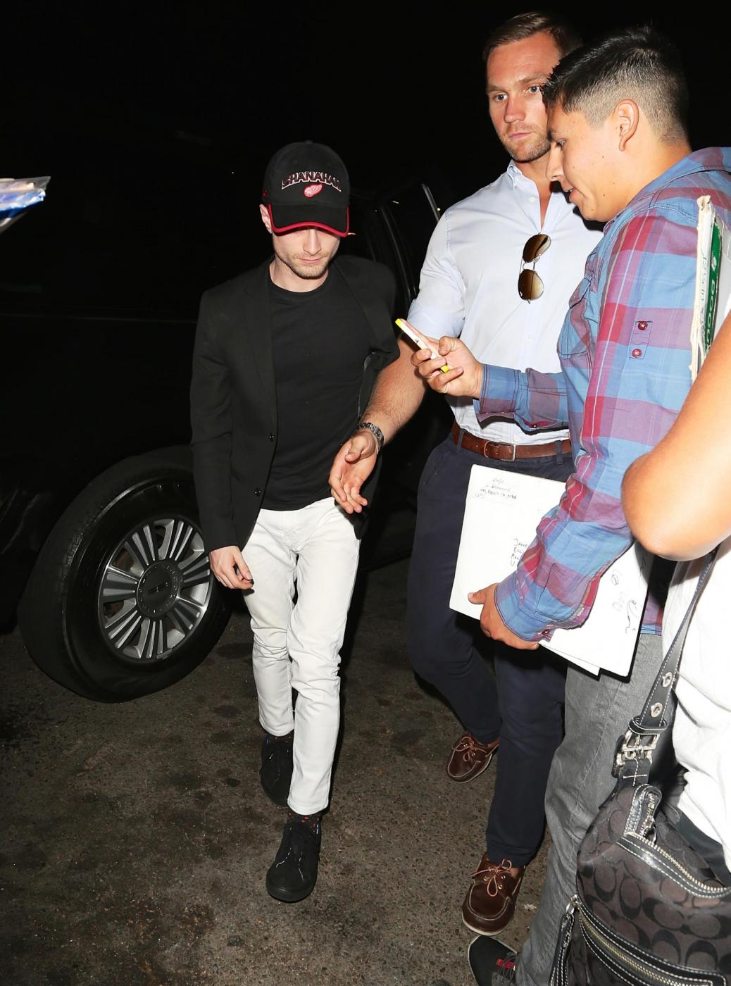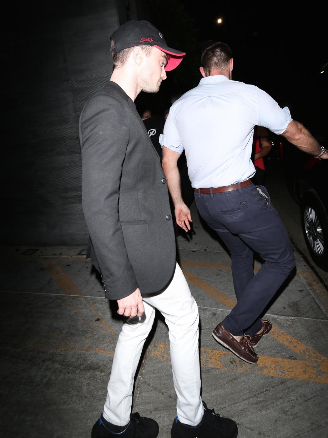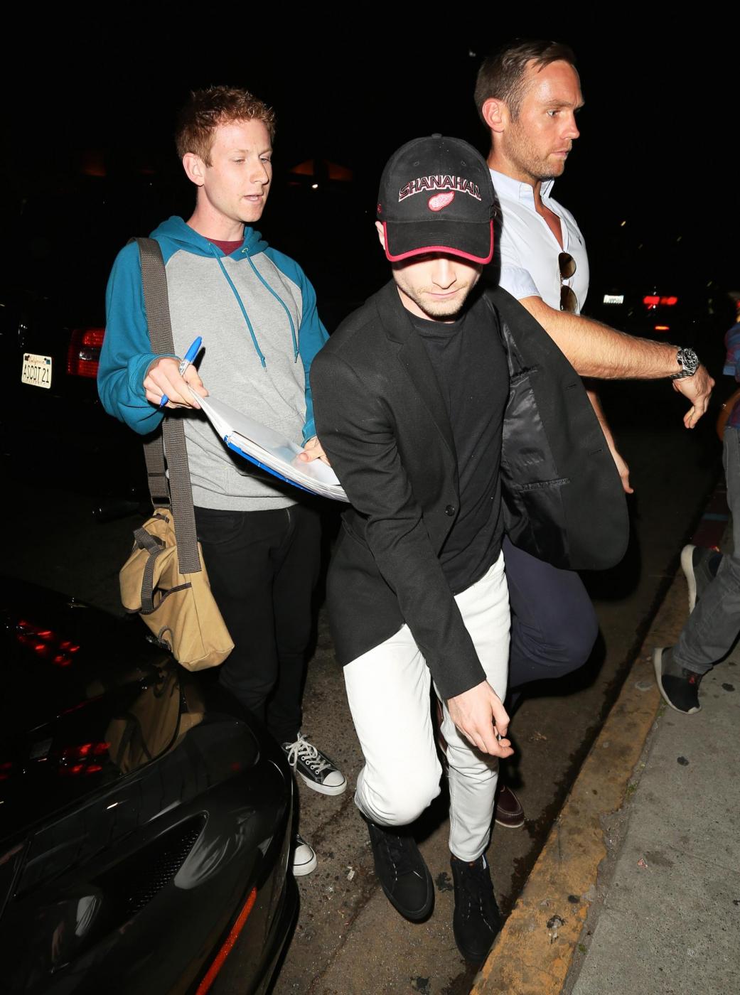 NATIONAL PHOTO GROUPDaniel Radcliffe had dinner at Nobu restaurant in West Hollywood. His bodyguard kept one fan from getting too close by grabbing the fan's arm as Radcliffe moved through the crowd.Job: 073014X2Non-Exclusive July 29th, 2014 Los Angeles, CANPG.com Lapresse Only italy