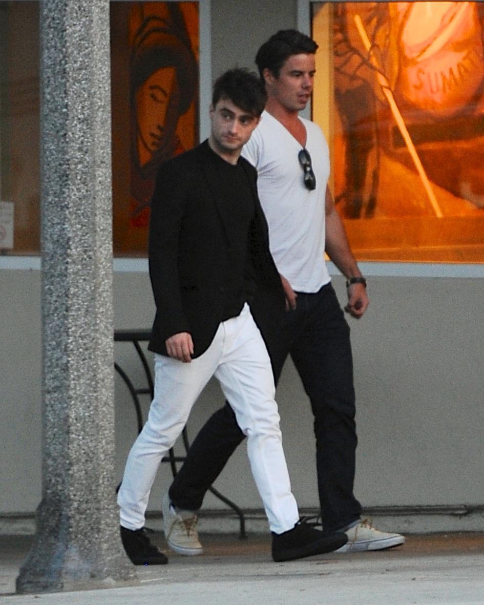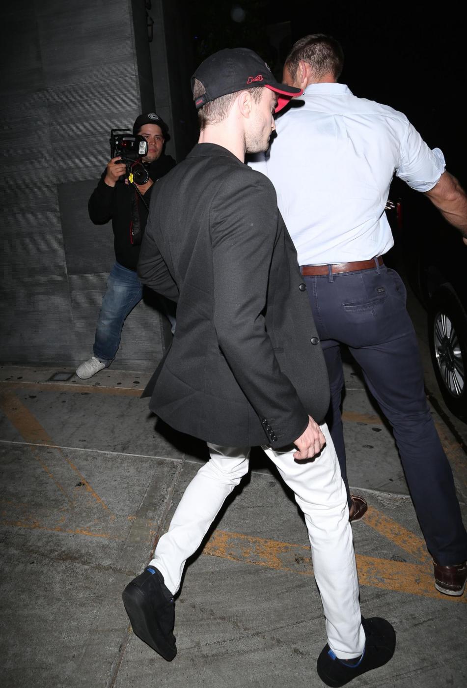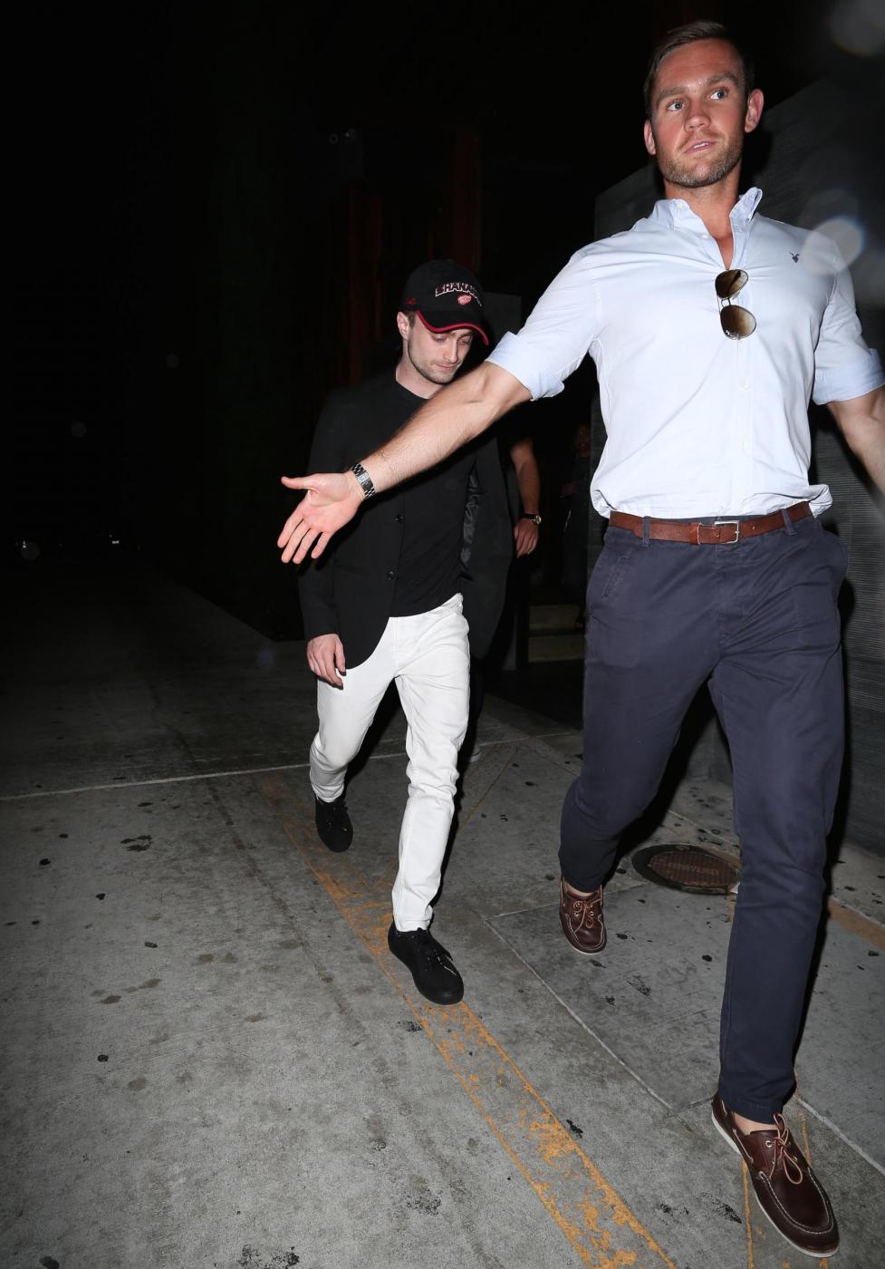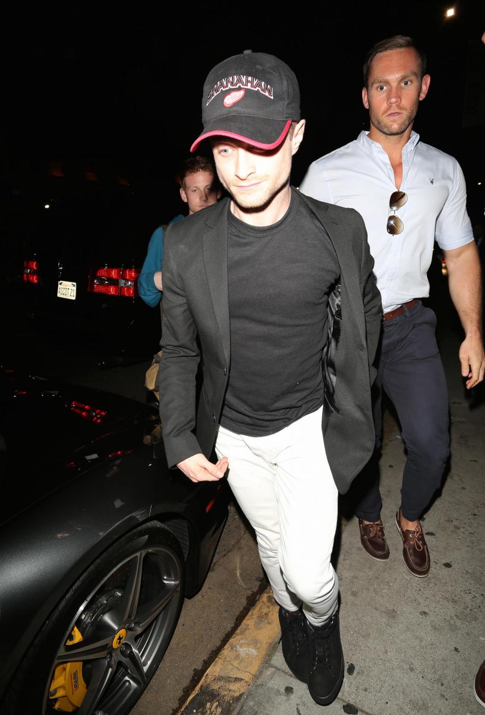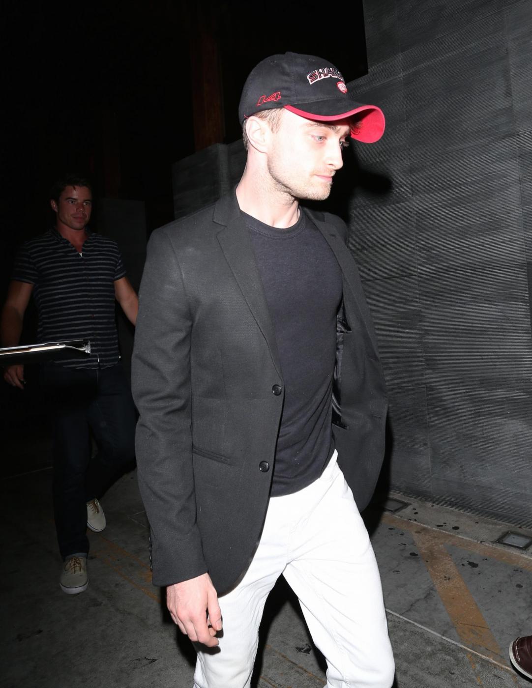 NATIONAL PHOTO GROUPDaniel Radcliffe had dinner at Nobu restaurant in West Hollywood. His bodyguard kept one fan from getting too close by grabbing the fan's arm as Radcliffe moved through the crowd.Job: 073014X2Non-Exclusive July 29th, 2014 Los Angeles, CANPG.com Lapresse Only italy