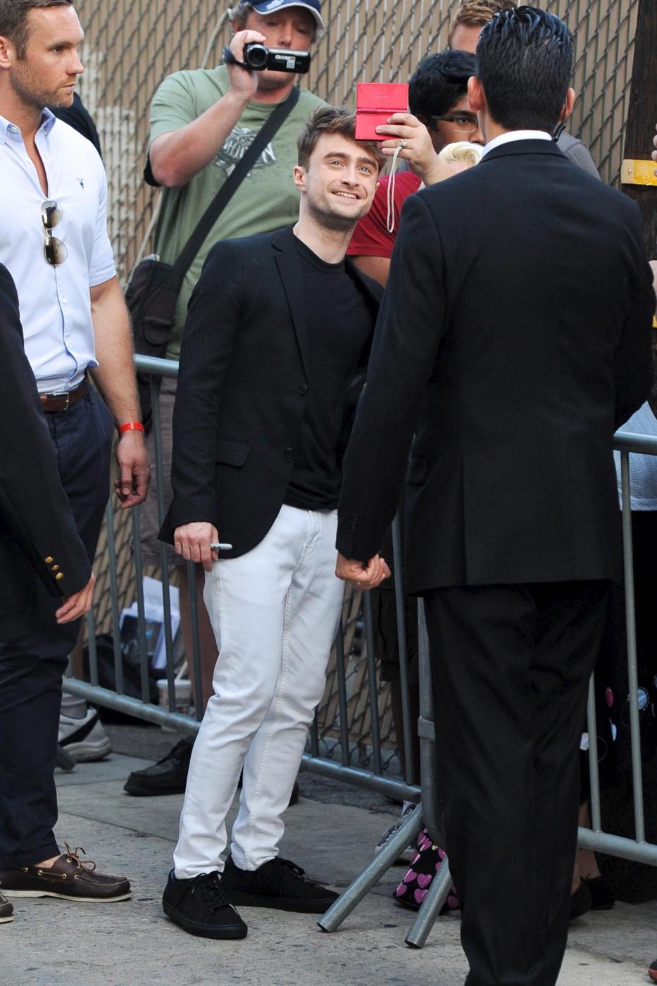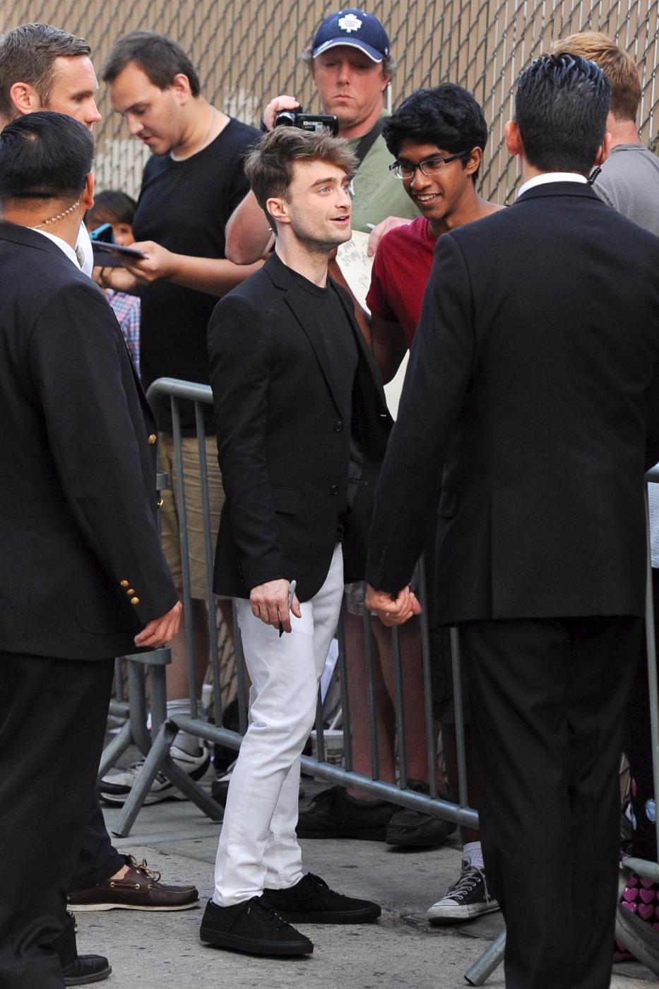 LOS ANGELES – Daniel Radcliffe sfoggia un look ‘business’ e cammina con un passo sicuro mentre esce dagli studi televisivi del ‘Jimmy Kimmel Live’. Accerchiato dagli uomini della sicurezza e dai fan, Daniel dimostra di essersi ormai lasciato alle spalle il maghetto di Harry Potter con gli occhialoni da vista e il fare impacciato, e si è trasformato in un uomo.