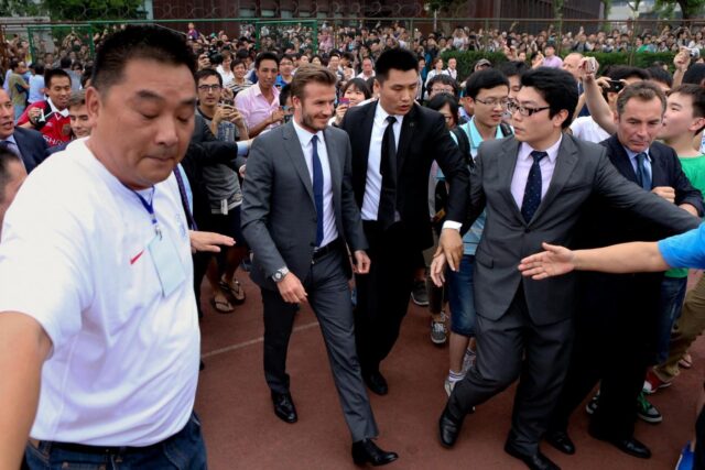 Appena la sicurezza ha aperto il cancello, la folla ha cominciato a spingere forzando il cordone delle guardie. Beckham e’ ambasciatore della Super Lega, la Serie A cinese, è in tour per promuovere il campionato.