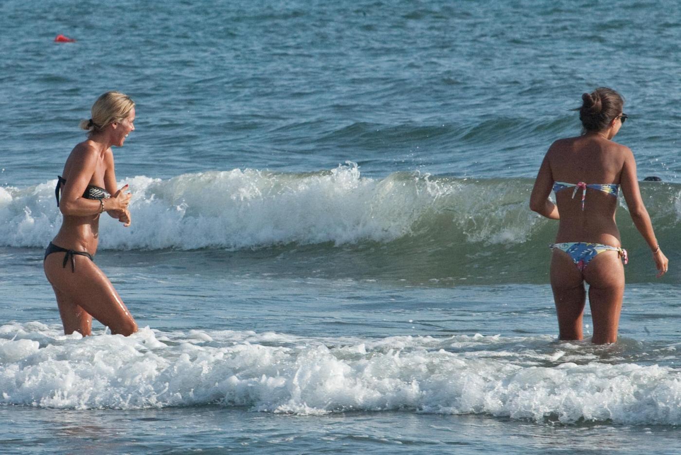 FORTE DEI MARMI (LUCCA) – Nei giorni scorsi era stata paparazzata in topless e mentre provava, in spiaggia, degli orecchini di una venditrice ambulante: oggi Deborah Roversi, la ex di Andea Pirlo, viene immortalata in costume nero striminzito, mentre si fa il bagno con un’amica.
