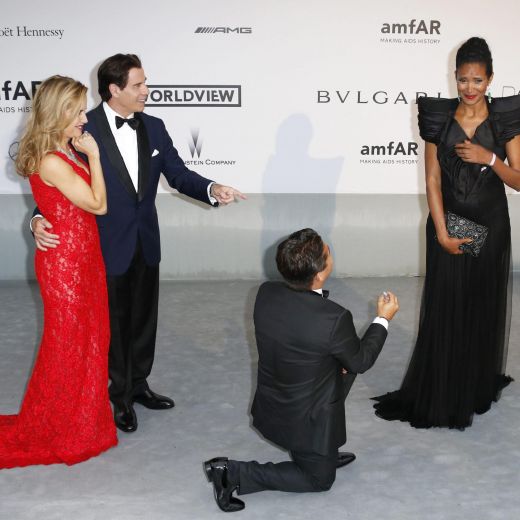 CANNES – La futura sposa non poteva immaginare che il fidanzato la stupisse con una proposta di matrimonio davvero eccentrica. Alla serata di gala organizzata dall’Amfar a Cap d’Antibes c’erano tutte le maggiori celebrità riunite per il vicino festival di Cannes. Sul red carpet arrivano Denny Mendez, Miss Italia 1996, il fidanzato Oscar Generale, agente di moda, John Travolta e la moglie Kelly Preston.
