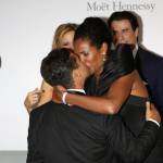 Di punto in bianco, davanti ai fotografi, Oscar si inginocchia davanti alla sua bella ed estrae un anello: lei capisce e si mette a piangere contenta, Travolta e la moglie “benedicono” i futuri sposi. (Foto Ansa e Lapresse).