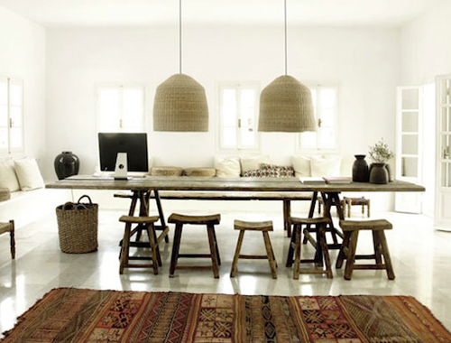 Gli interni, curati da Michael Schickinger e Annabell Kutucu, richiamano lo chic bohemien degli anni sessanta, con abbondanti materiali naturali, tessuti fatti a mano, e pezzi d’epoca provenienti da mercatini delle pulci di Atene. “Il nostro obiettivo era quello di creare un luogo che ha una atmosfera rilassata”, Schickinger dice. “Abbiamo voluto portare calore e luminosità agli spazi, mantenendo una sensazione di semplicità e leggerezza.”
