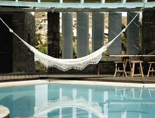 Originariamente costruito nel 1990 da un pescatore locale, l’edificio in stucco bianco da cartolina è stato recentemente acquistato da Thomas Heyne e Mario Hertel, proprietari del famoso Club Paradise, che si trova proprio accanto. Il duo ha affrontato il fondatore di Design Hotels, Claus Sendlinger, per trasformare la proprietà di 34-camere in un hip temporaneo hub per residenti e visitatori per raccogliere durante la stagione estiva.