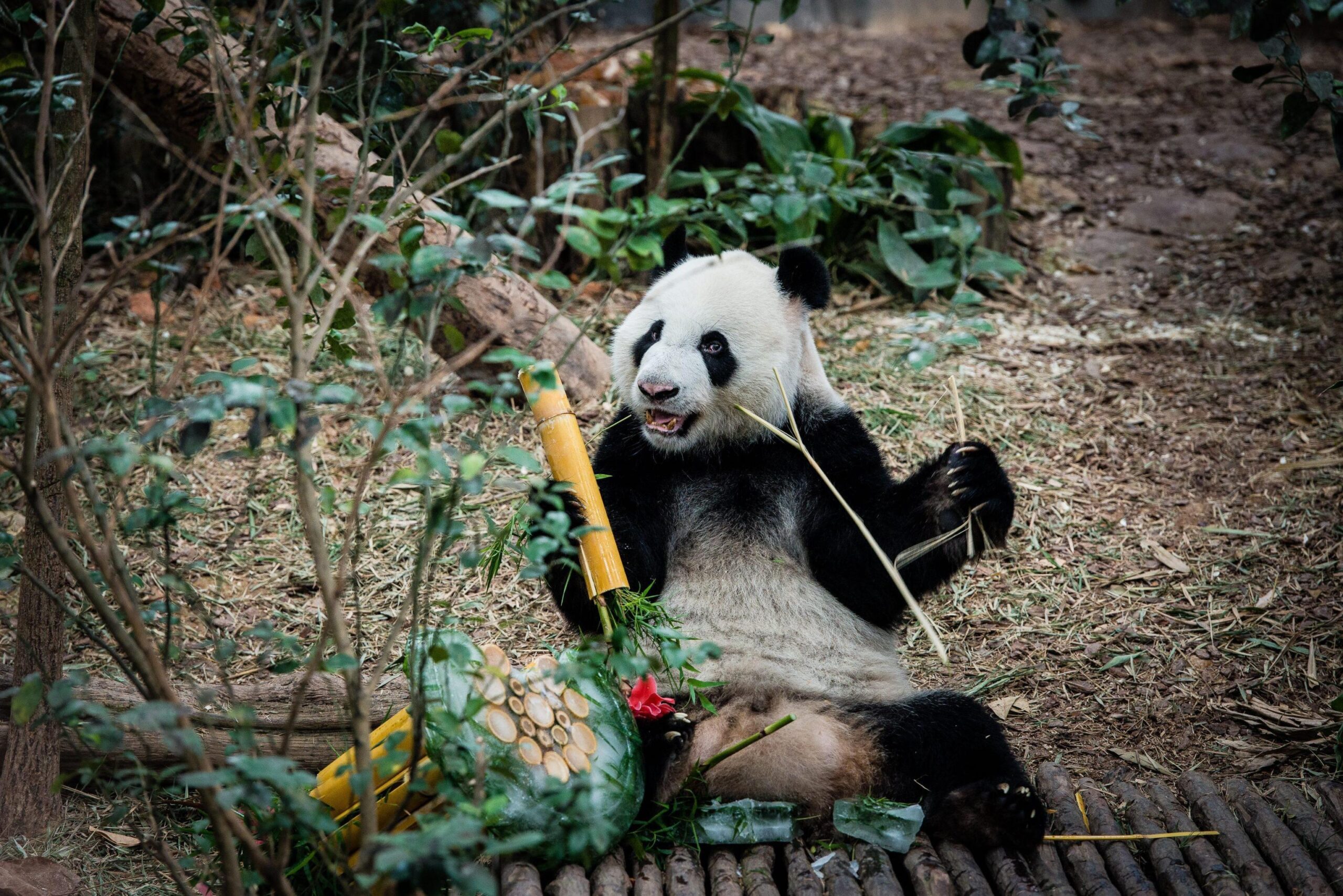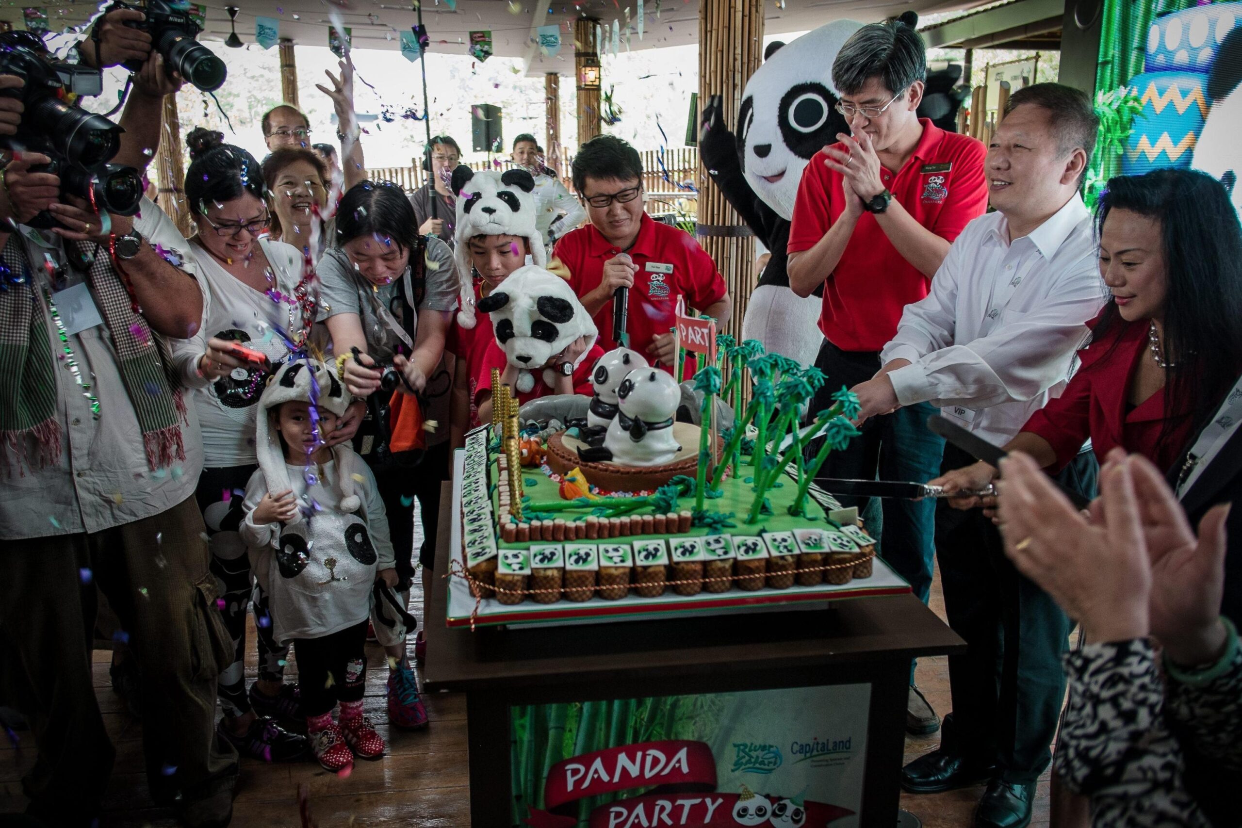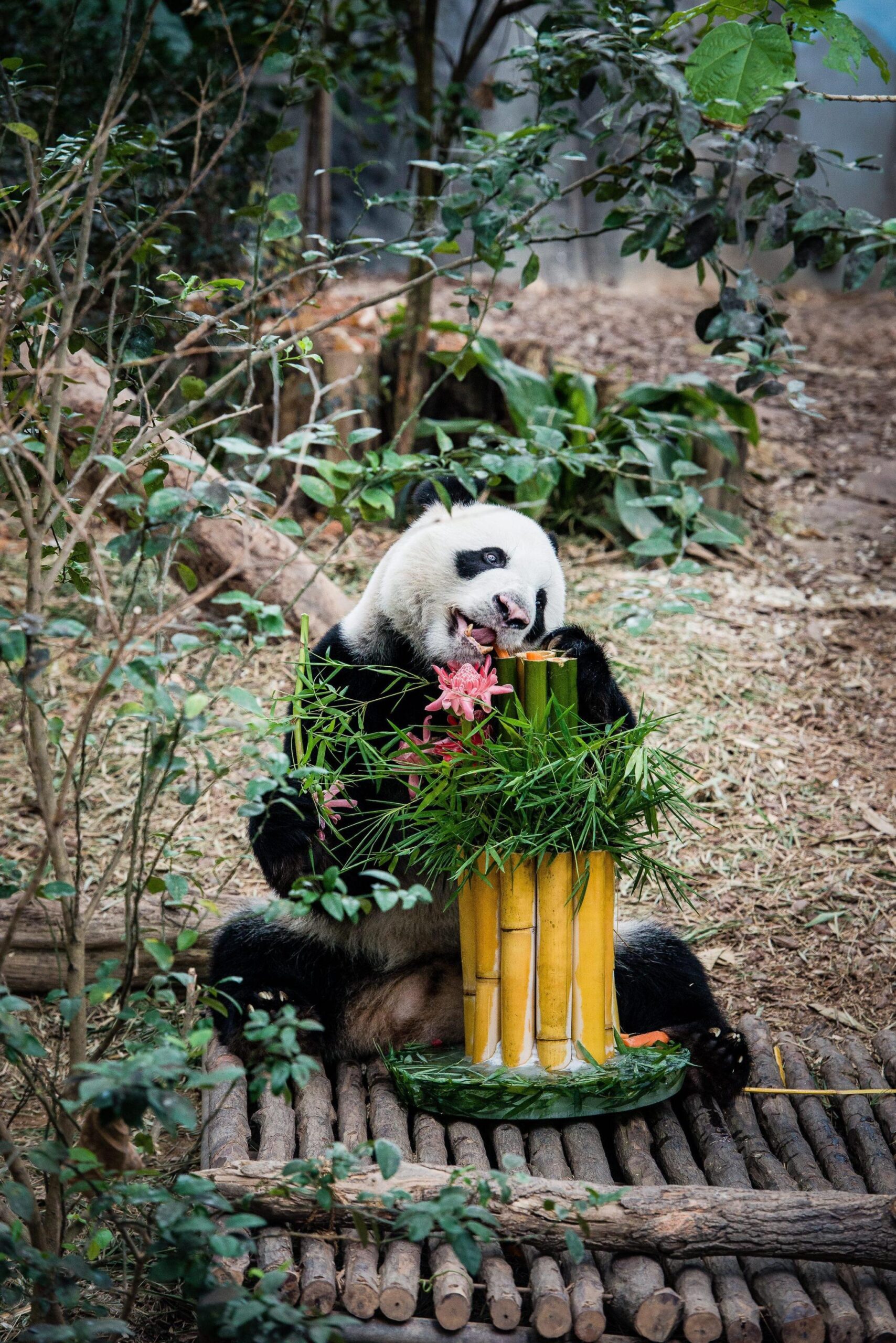 SINGAPORE – Kai Kai e Jia Jia ricevono dallo zoo di Singapore una torta di bamboo per il loro compleanno.