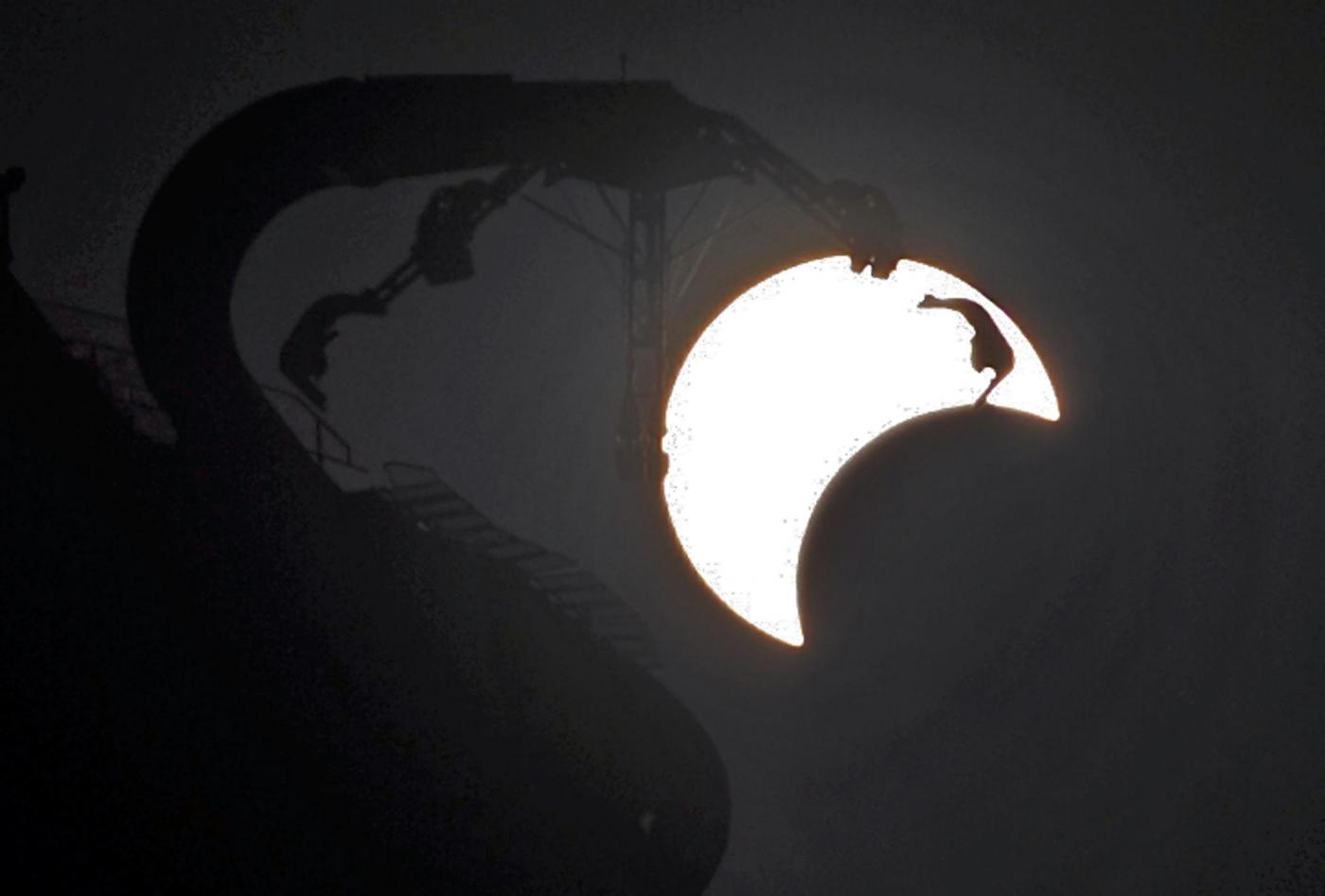 YANGZHOU, May 21, 2012 A partial solar eclipse is observed in Yangzhou, east China's Jiangsu Province, on the early morning of May 21, 2012. (Credit Image: © Si Xinli/Xinhua/ZUMAPRESS.com)