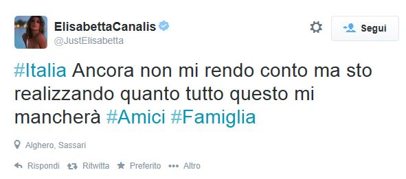 “Ancora non mi rendo conto ma sto realizzando quanto tutto questo mi mancherà”, ha intanto twittato la Canalis poco prima dell’inizio della cerimonia mentre il giorno prima ha scritto: “Ancora poche ore prima di diventare una vera Sig.ra!”.