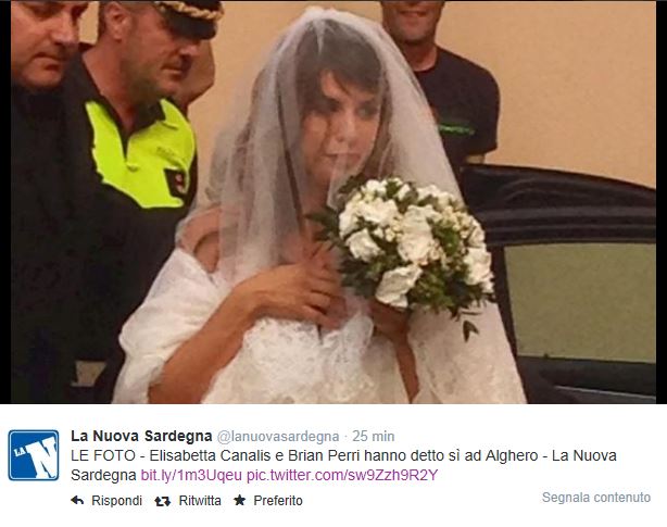 ALGHERO – Elisabetta Canalis e Brian Perri sposi: le nozze fra l’ex velina e il chirurgo americano sono state celebrate alle 16.30 di domenica 14 settembre nella Chiesa di Santa Maria a Alghero (Sardegna). Per l’occasione l’intero centro storico è stato blindato fino a sera.