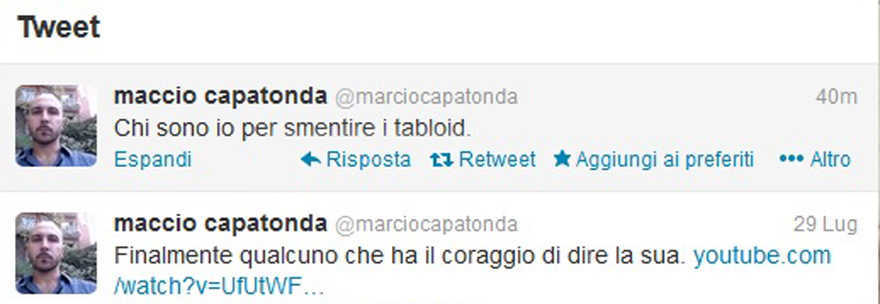 Maccio Capatonda, dal canto suo, non ha smentito il grande fermento che si è formato in Rete dopo la notizia data da “Chi”, il settimanale diretto da Alfonso Signorini. Lex velina, su Twitter tace. L’altro interessato ha invece postato un divertente tweet in cui si chiede: “Chi sono io per smentire i tabloid” spiegando praticamente nulla della faccenda. D’altronde lo stile del comico è così: decisamente surreale.