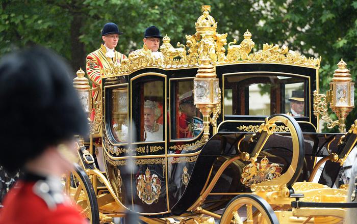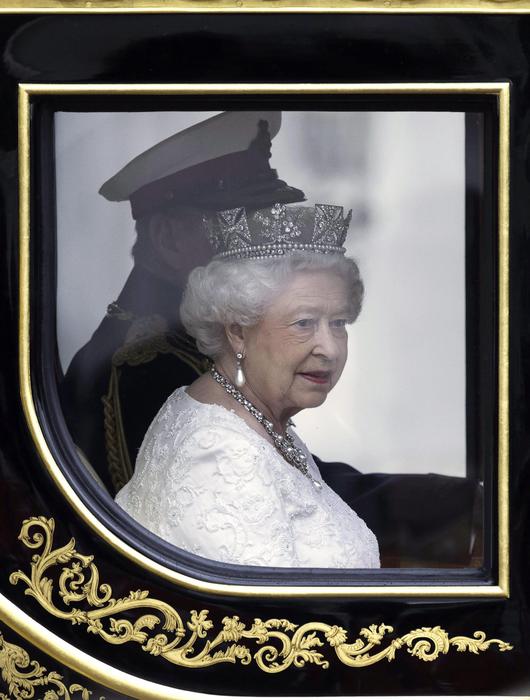 epa04238990 Britain's Queen Elizabeth II makes her way by royal carriage along The Mall for her State Opening of Parliament Speech in London, Britain, 04 June 2014. EPA/FACUNDO ARRIZABALAGA