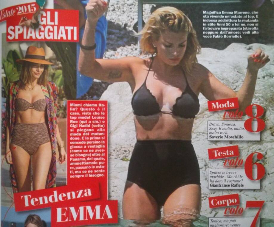 ROMA – Emma Marrone in bikini, fisico al top. Il settimanale Chi ha pubblicato una foto della cantante in costume ed appare in formissima. La coach di Amici indossa un due pezzi nero con slip a vita alta stile anni 50, un modello che in poche possono permettersi.