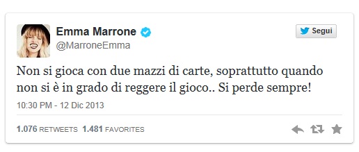Emma non deve aver preso bene la notizia. Solo qualche giorno fa ha lanciato su Twetter un cinguettio non proprio rassicurante: