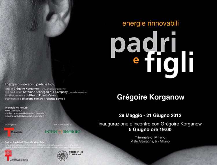 MILANO – Stasera alle 19 alla Triennale si inaugura ufficialmente la mostra “Energie rinnovabili: padri e figli”, secondo step del progetto PinkVision, una grande installazione per 44 emozionanti scatti del fotografo francese Grégoire Korganow, che sarà presente per un incontro col pubblico. Il dibattito su Energie rinnovabili evolve qui in una straordinaria visione transgenerazionale. L’artista interpreta in questa sua ricerca l’inesauribile energia… evergreen che lega padri a figli e ancora a padri… di generazione in generazione.
