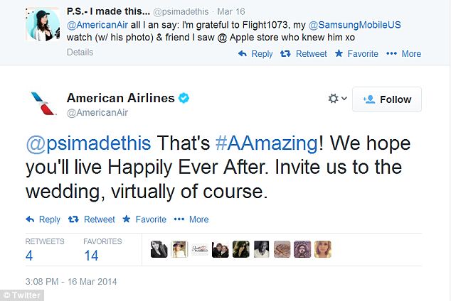 A sua volta, la compagnia aerea ha augurato tanta felicità alla coppia. Con un tweet, l’American Airlines ha augurato ai due di vivere felici e contenti “Invitateci al matrimonio, – ha concluso la compagnia – virtualmente, s’intende!'”