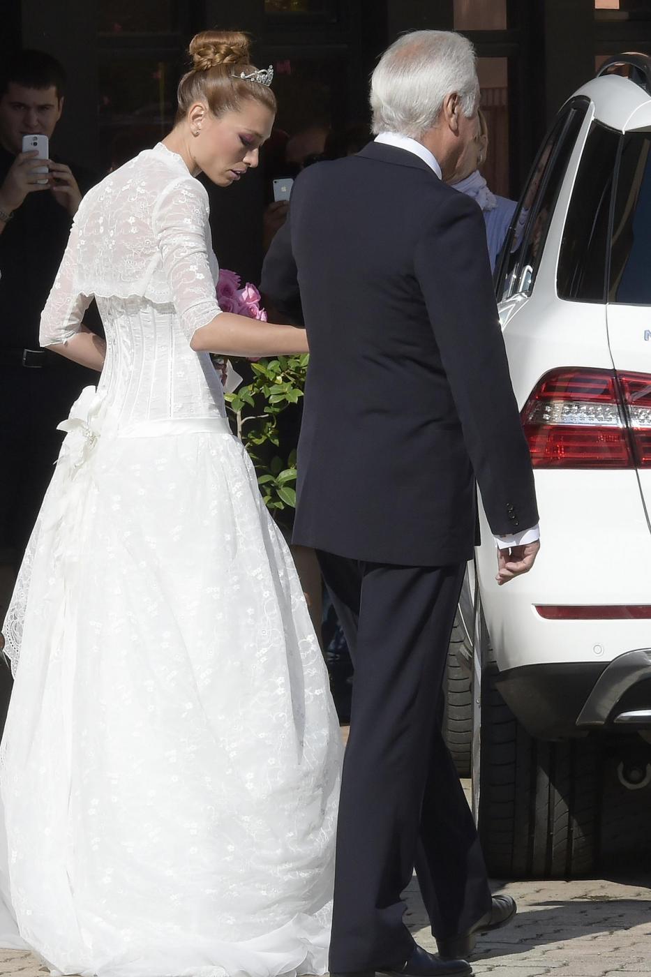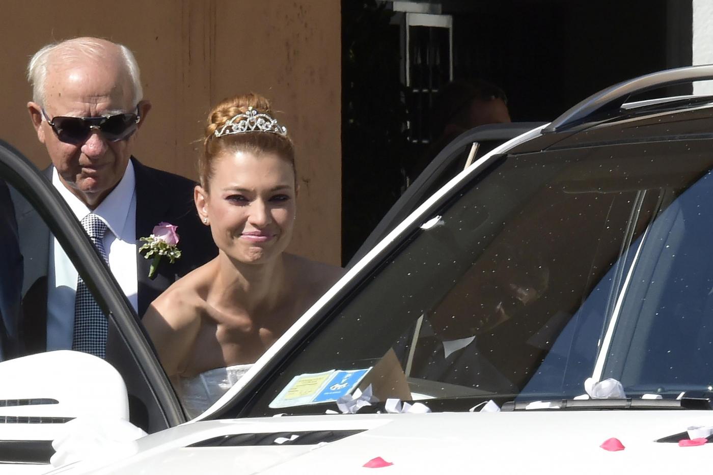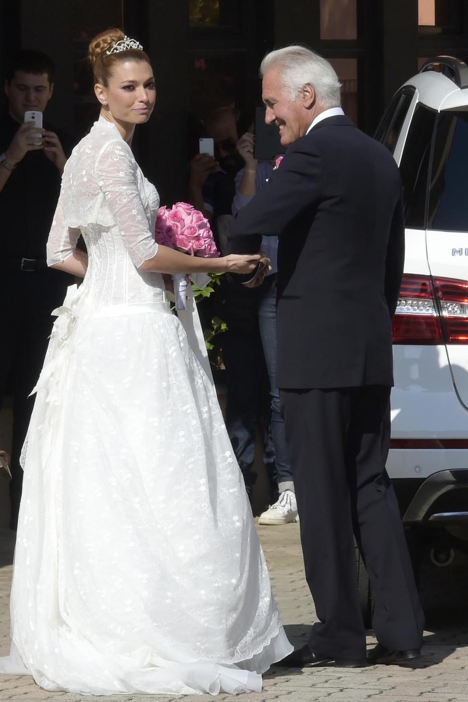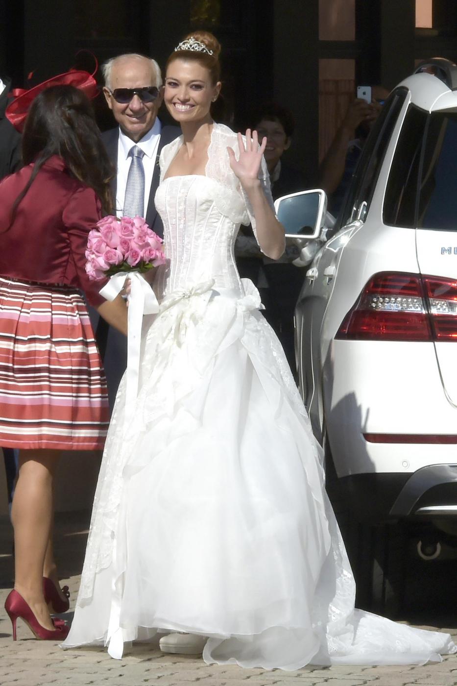 Foto Mario Cartelli/LaPresse 04/10/2014 Roma - Italia gossip Celebrato il matrimonio tra Fabrizio Frizzi e Carlotta Mantovam, parrocchia di San Gabriele Arcangelo, Viale Cortina D'Ampezzo Roma - Italia. Nella foto: Carlotta Mantovan con il padre.