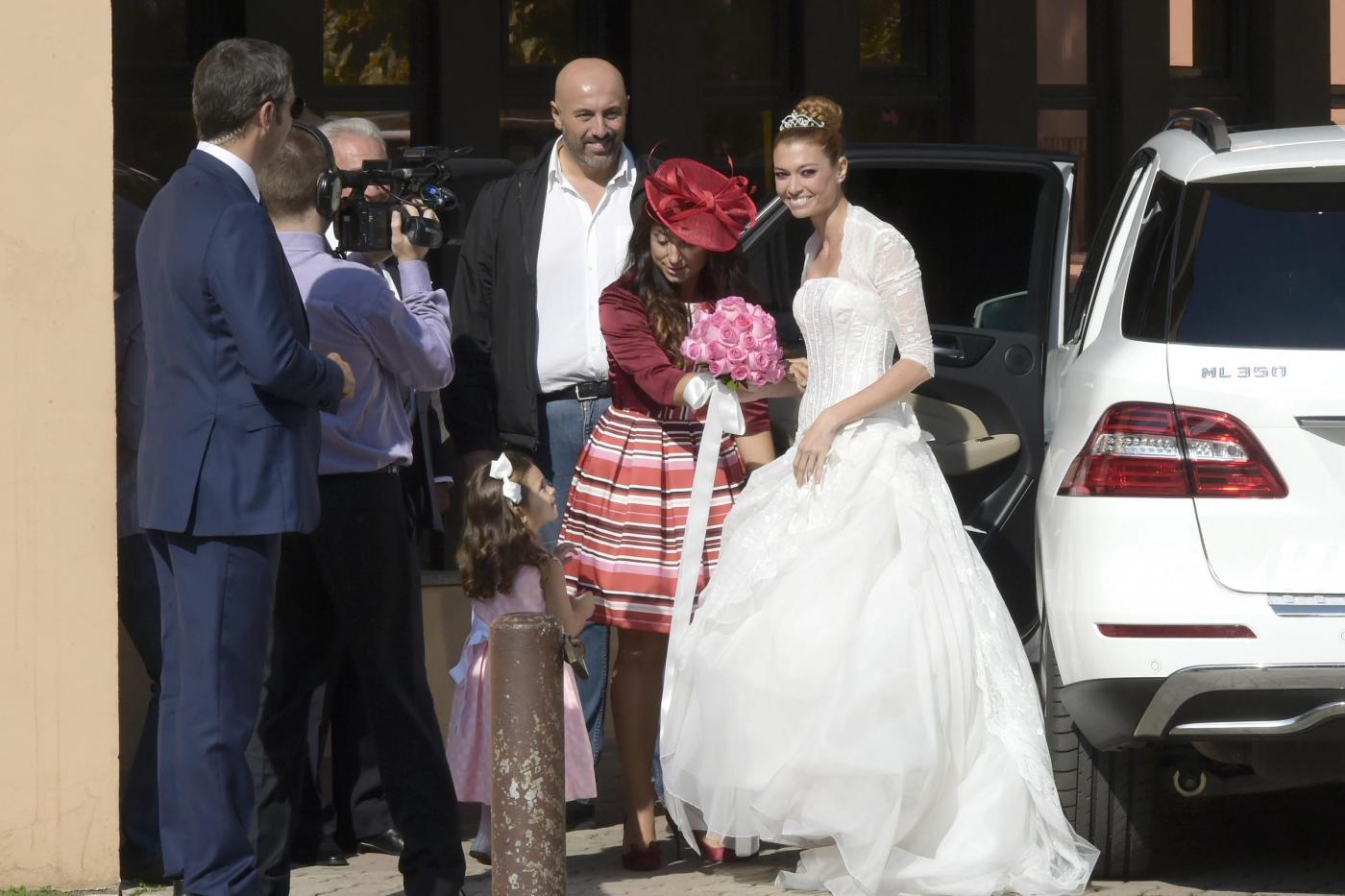 Foto Mario Cartelli/LaPresse 04/10/2014 Roma - Italia gossip Celebrato il matrimonio tra Fabrizio Frizzi e Carlotta Mantovam, parrocchia di San Gabriele Arcangelo, Viale Cortina D'Ampezzo Roma - Italia. Nella foto: Stella la figlia di Fabrizio e Carlotta.