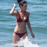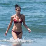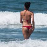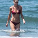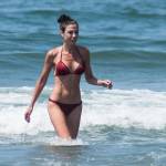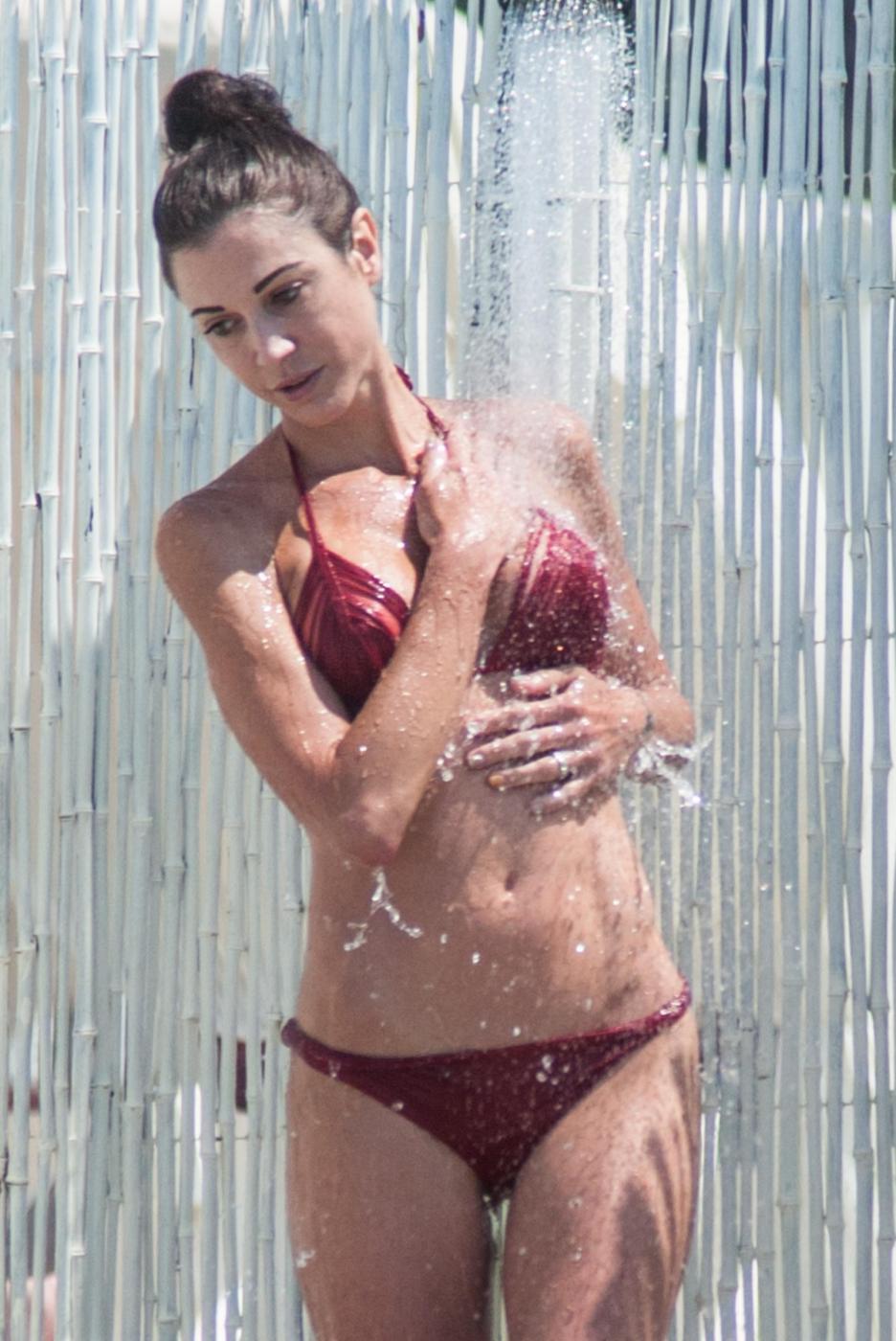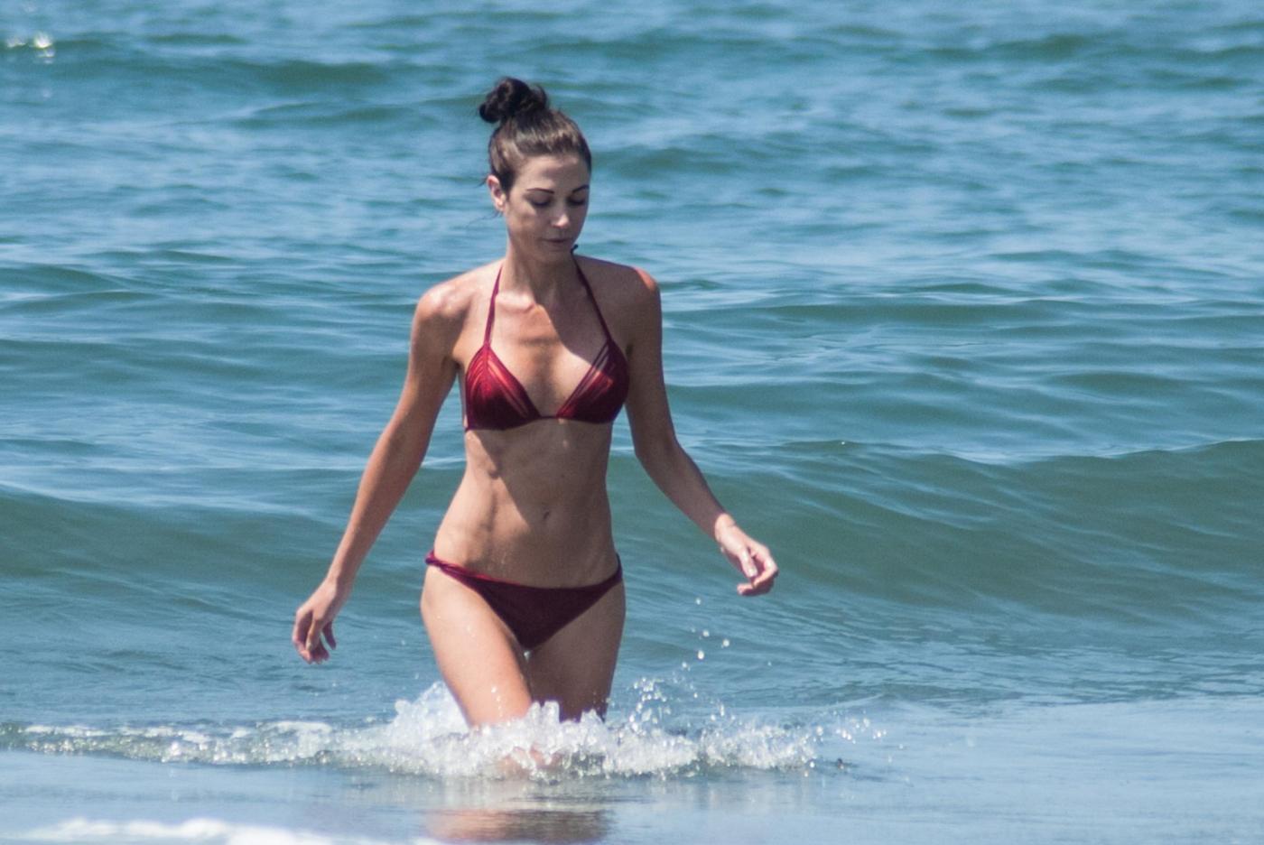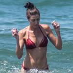 Il costume minimal rosso fuoco mette in risalto le sue forme perfette e il fisico tonico e asciutto, il tutto completato da un ampio e radioso sorriso. Durante la partita si può notare che la tecnica di beach volley della Torti è ancora da affinare, ma di fronte a tale bellezza chi ci fa caso? (Foto LaPresse) .