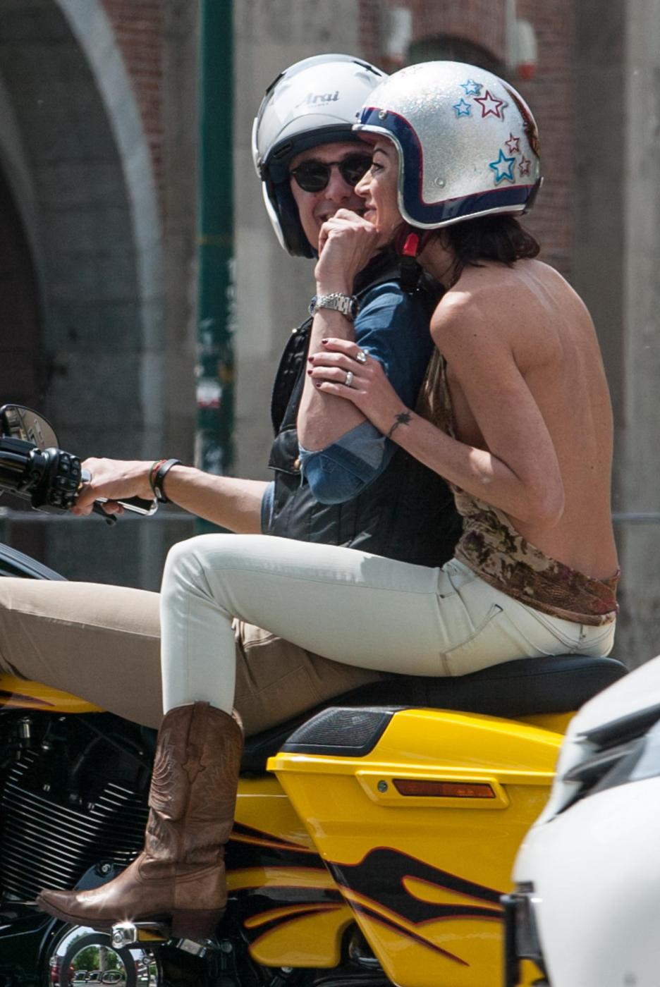 Insieme fanno un giro a bordo della due ruote, per finire con una passeggiata che, tra abbracci e risate, fa pensare a qualcosa di più di una semplice amicizia. Federica per l’occasione indossa un paio di pantaloni bianchi attillati e un top minimalista che lascia poco all’immaginazione. Foto LaPresse.