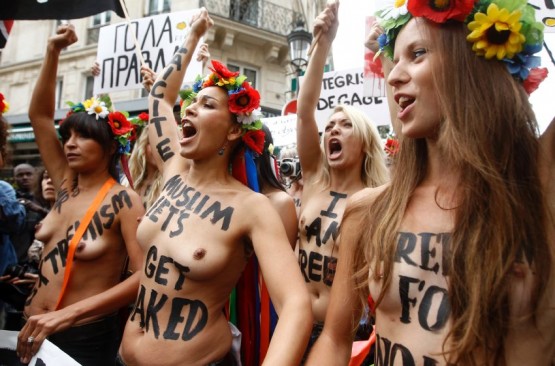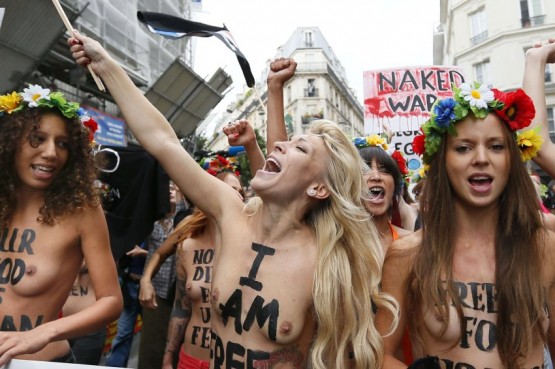 “In Francia le donne non si vergognano di dire che sono femministe, mentre nel mio Paese è tabù”, ha spiegato ai presenti Inna Shevchenko, una delle esponenti più note delle Femen, rifugiatasi a Parigi qualche tempo fa dopo una rocambolesca fuga dall’Ucraina, dove temeva rappresaglie in seguito alla dimostrazione di sostegno alle Pussy Riot russe. “Per questo – ha aggiunto – apriamo qui un centro internazionale di preparazione, per le femministe che si trasformeranno in soldati”.
