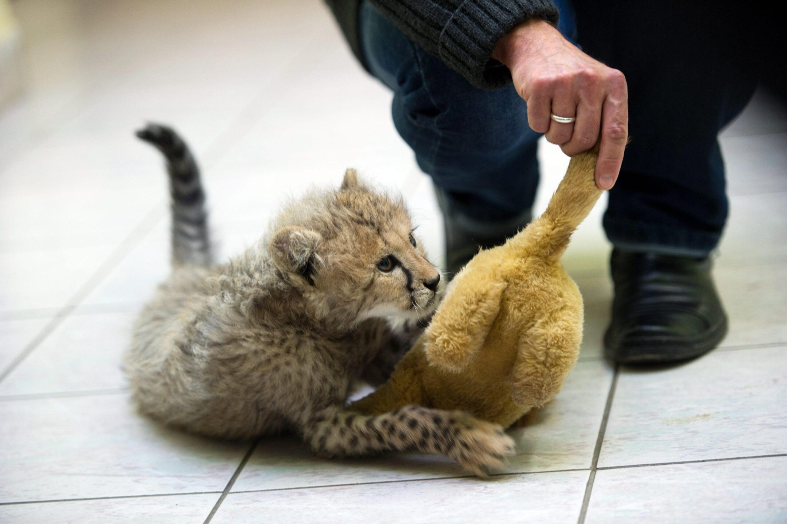 epa03498695 Two-month female cheetah is presented in Zoo in Lodz, Poland, 06 December 2012. The cheetah was born in Lodz Zoo and so far only zoological gardens in Warsaw and Katowice have managed to breed the species. EPA/GRZEGORZ MICHALOWSKI POLAND OUT