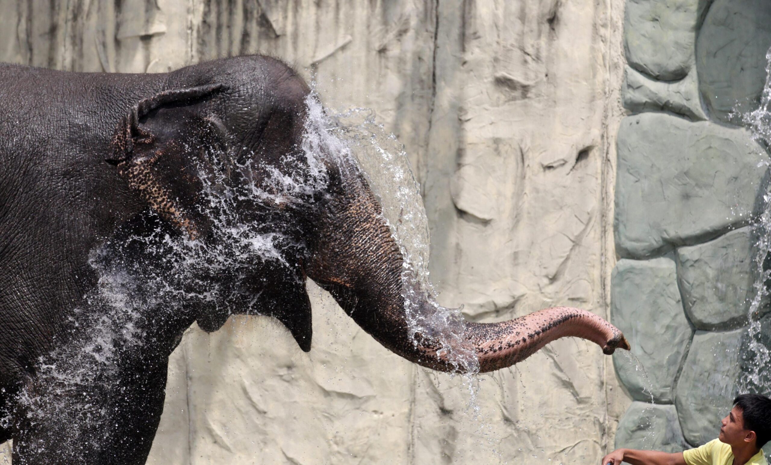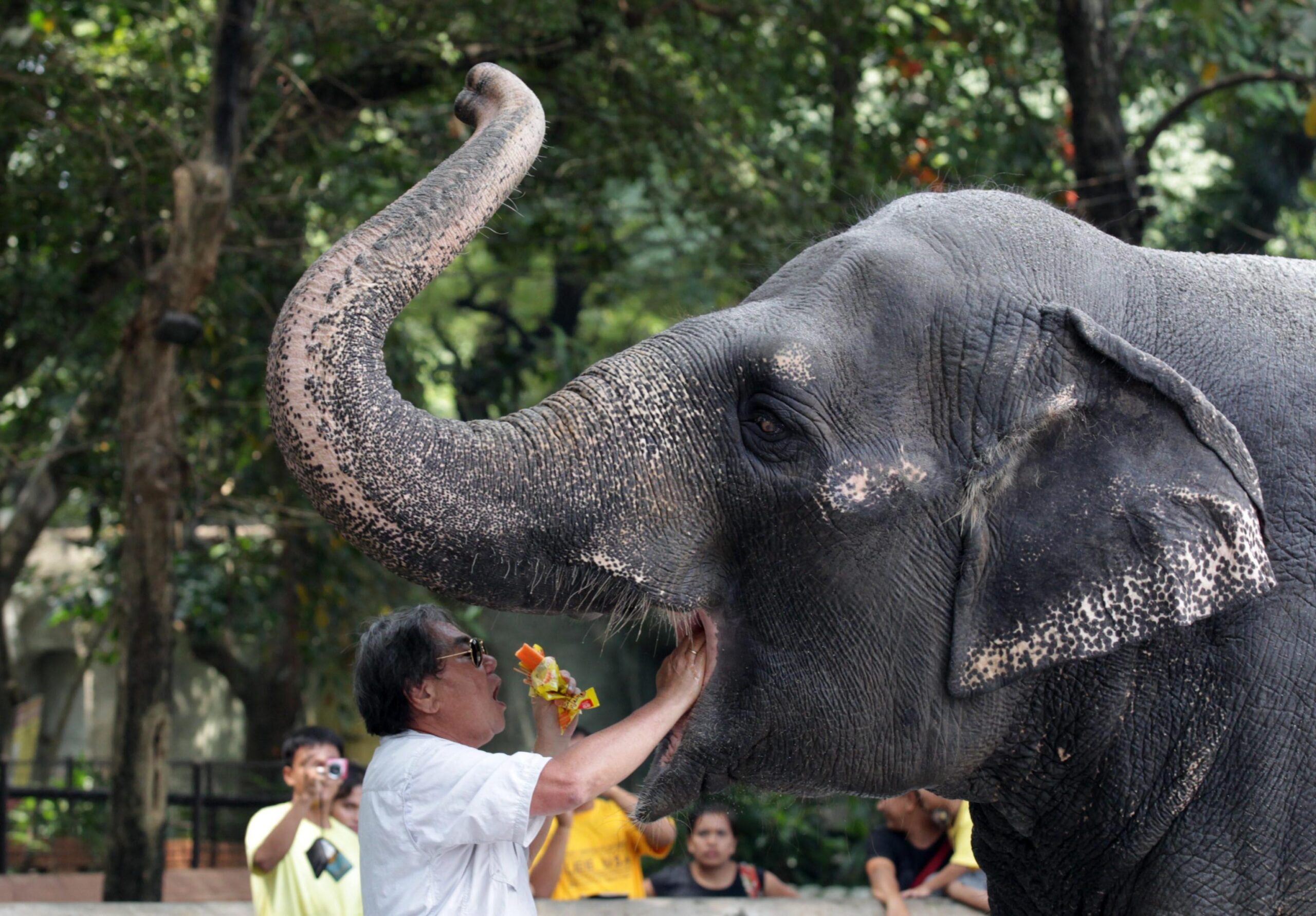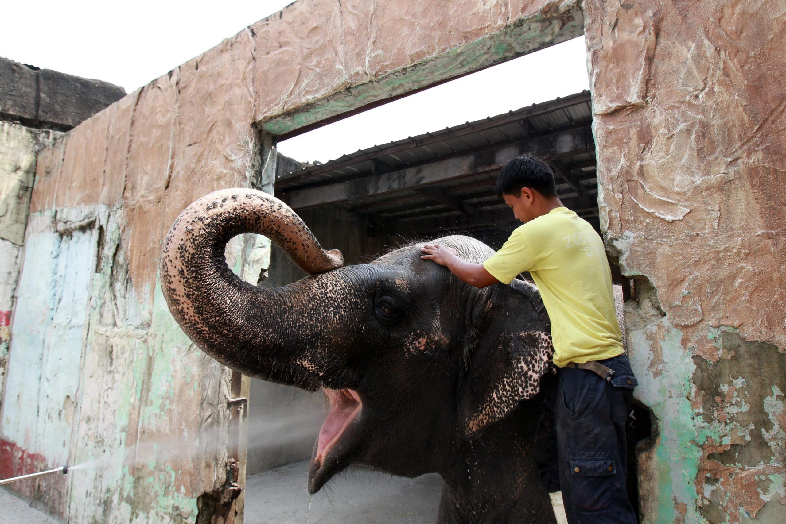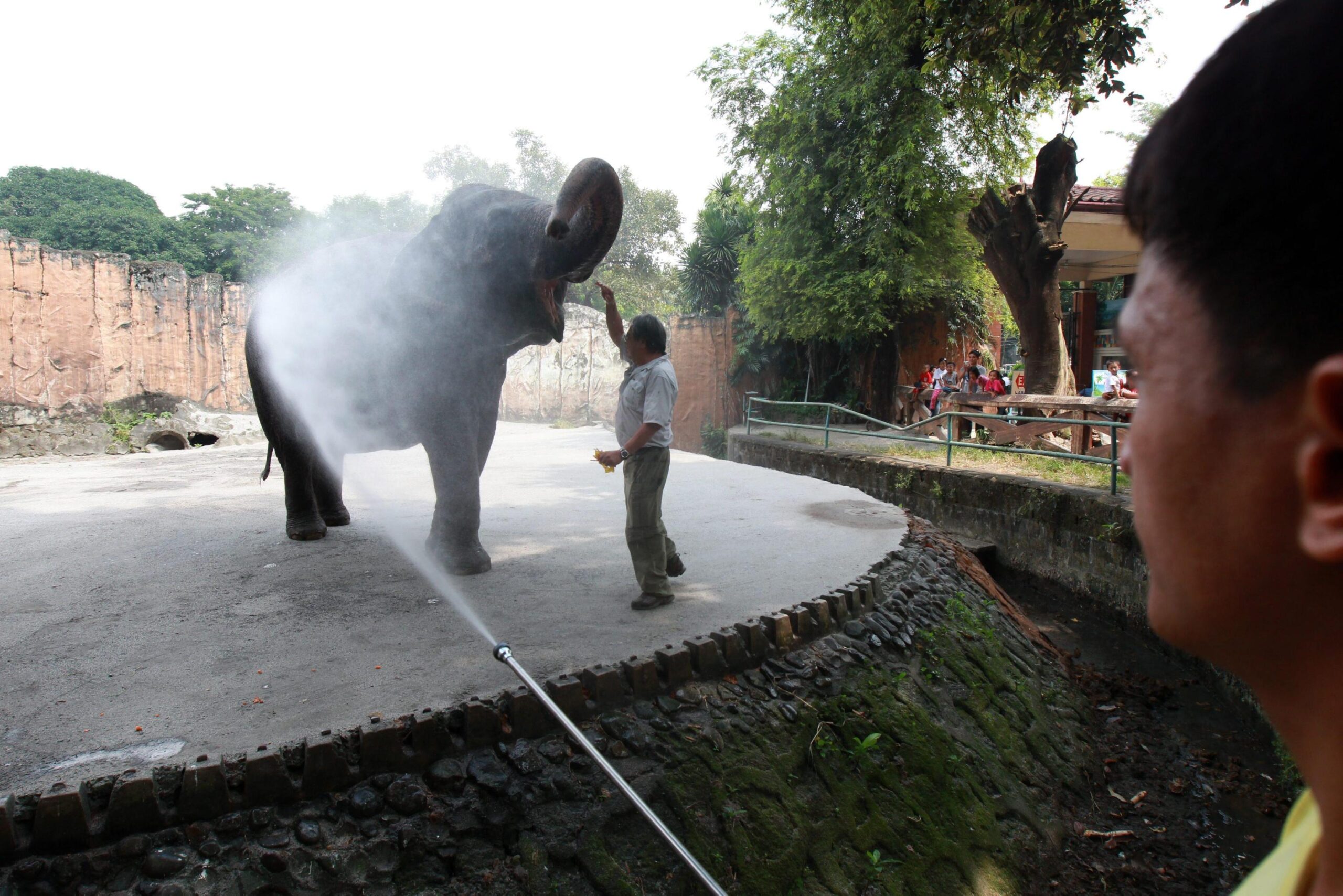 epa03491320 (10/14) Maali is splashed with a bucket of water by Filipino Noel Co, who has been her caretaker for several years at the Manila Zoo, Philippines, 18 October 2012. Maali, a 38 year-old Asian elephant, has been the focus of international campaign aimed at freeing her from the confines of Manila Zoo, where she has spent the last 35 years alone in a concrete enclosure. In 1977, Maali, only 3 years old then, was imported from Sri Lanka and shipped to the Philippines. She was donated to the children of Manila by the Pinnawala Elephant Orphanage in Sri Lanka, after her mother was allegedly killed by poachers. EPA/DENNIS M. SABANGAN PLEASE ADVISORY NOTICE epa03491310 FOR FULL FEATURE TEXT epa03491315 (05/14) Filipino John Chua, mahout of Maali (C) feeds her with popsicles as her caretaker sprays water at her in the Manila Zoo, Philippines, 18 October 2012. Maali, a 38 year-old Asian elephant, has been the focus of international campaign aimed at freeing her from the confines of Manila Zoo, where she has spent the last 35 years alone in a concrete enclosure. In 1977, Maali, only 3 years old then, was imported from Sri Lanka and shipped to the Philippines. She was donated to the children of Manila by the Pinnawala Elephant Orphanage in Sri Lanka, after her mother was allegedly killed by poachers. EPA/DENNIS M. SABANGAN PLEASE ADVISORY NOTICE epa03491310 FOR FULL FEATURE TEXT epa03491313 (03/14) Filipino John Chua, mahout of Maali (C) feeds her with popsicles at the Manila Zoo, Philippines, 18 October 2012. Maali, the 38 year-old Asian elephant, has been the focus of international campaign aimed at freeing her from the confines of Manila Zoo, where she has spent the last 35 years alone in a concrete enclosure. In 1977, Maali, only 3 years old then, was imported from Sri Lanka and shipped to the Philippines. She was donated to the children of Manila by the Pinnawala Elephant Orphanage in Sri Lanka, after her mother was allegedly killed by poachers. EPA/DENNIS M. SABANGAN PLEASE ADVISORY NOTICE epa03491310 FOR FULL FEATURE TEXT
