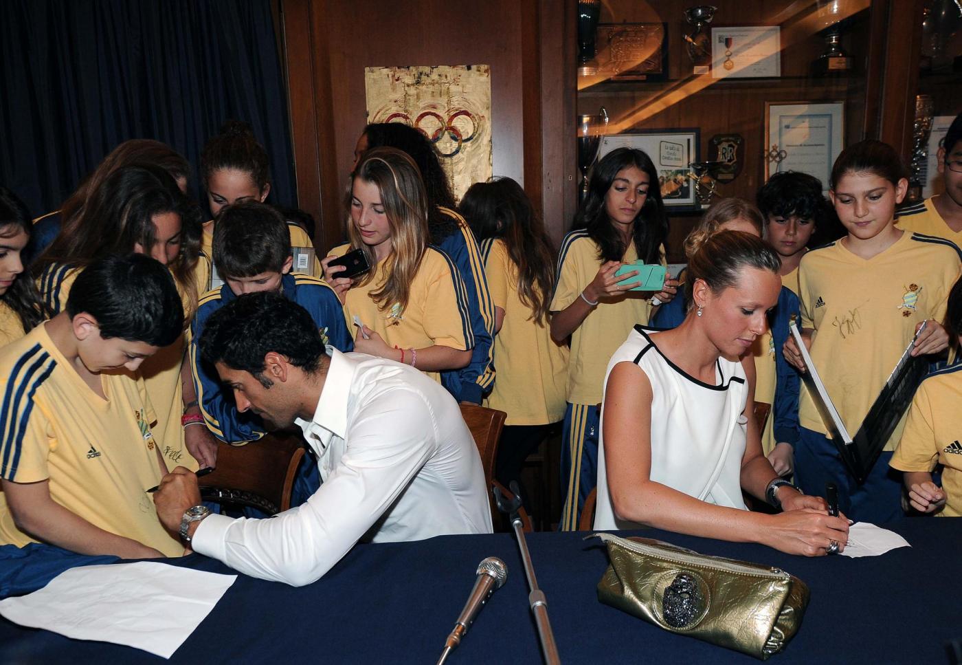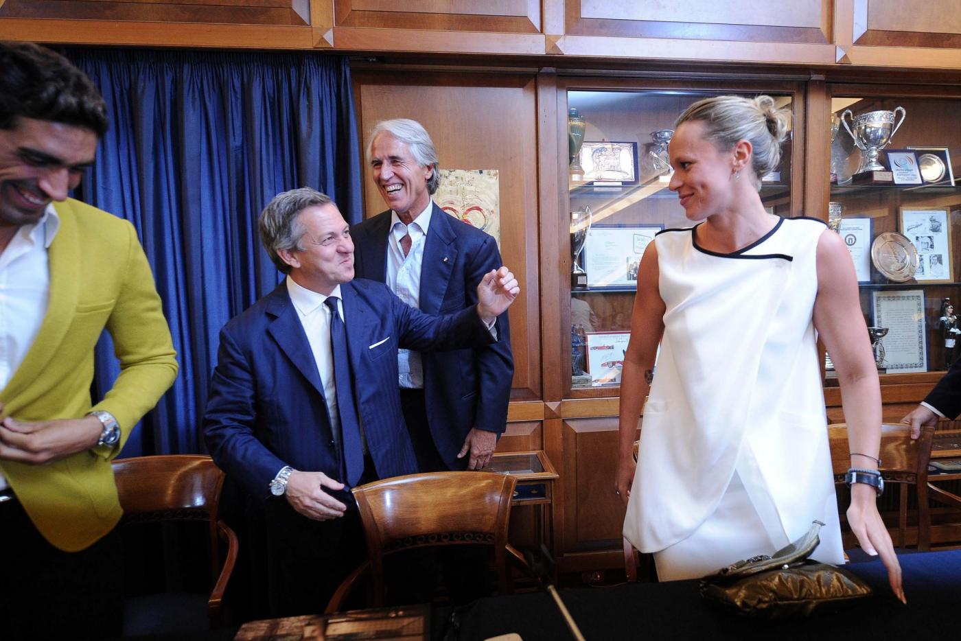 Foto Fabio Cimaglia / LaPresse 16-06-2014 Roma Filippo Magnini presenta il libro fotografico "beyond my water" al Circolo Canottieri Aniene Nella foto Filippo Magnini, Federica Pellegrini, Giovanni Malagò Photo Fabio Cimaglia / LaPresse 16-06-2014 Roma (Italy) Filippo Magnini presents the book "beyond my water" to Aniene Rowing Club In the photo Filippo Magnini, Federica Pellegrini, Giovanni Malagò