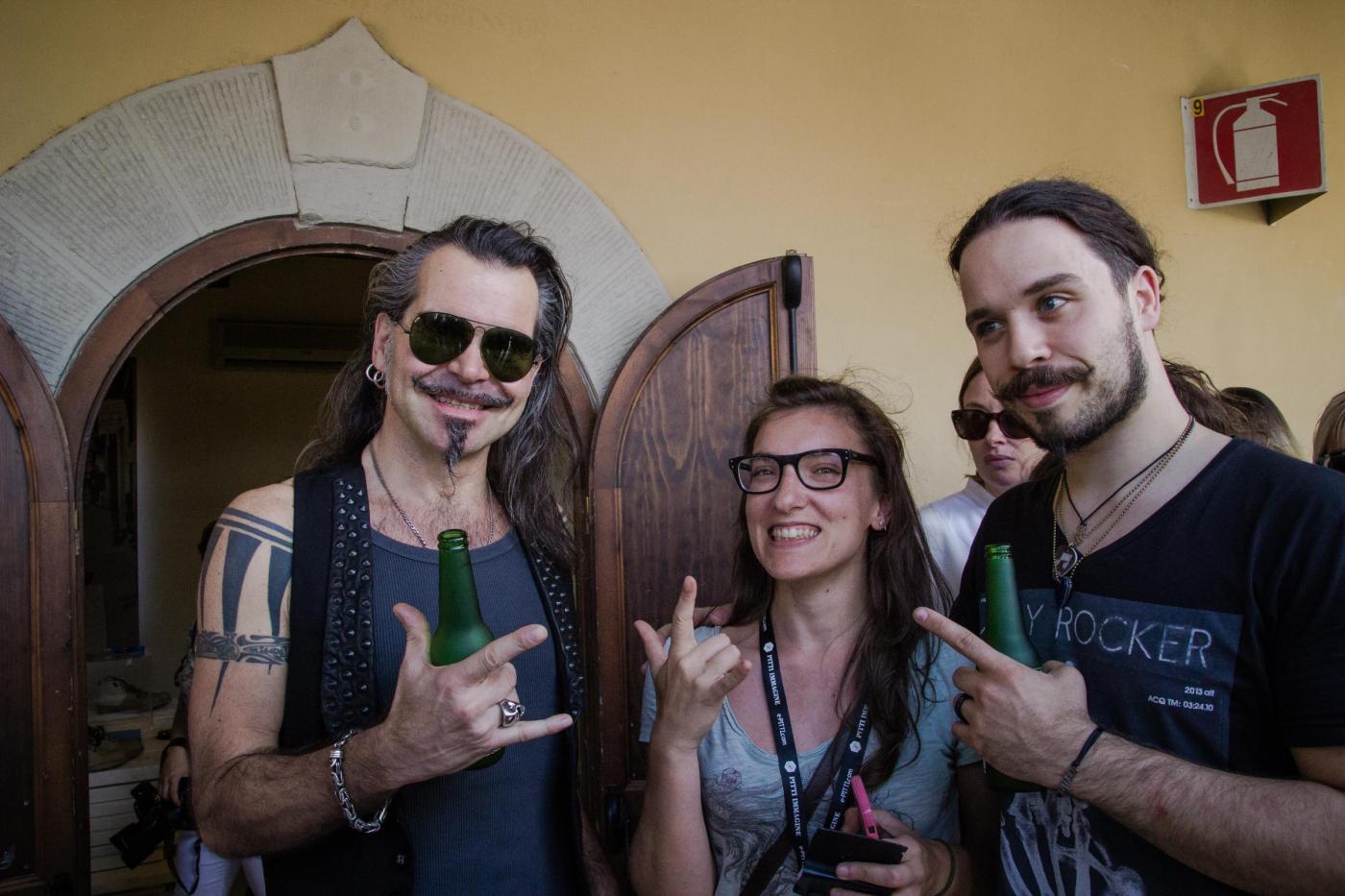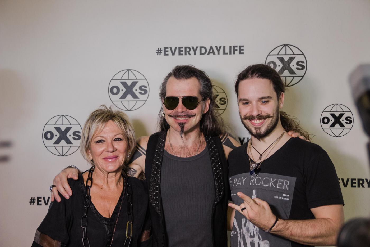 Foto Lorenzo Masi -LaPresse Firenze, 18 giugno 2014. Fortezza da Basso. Il cantante Piero Pelù e il cantante Giacomo Voli presso lo stand del brand O.X.S., insieme a loro la titolare del brand Nenella Impiglia./ITALY. Florence, 18th June 2014. Fortezza da Basso. Singer Piero Pelù and singer Giacomo Voli at the O.X.S. brand's stand, together with them the brand owner Nenella Impiglia.