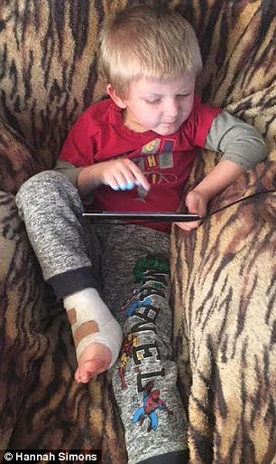 Ty stava giocando con le sue sorelle Madison, Jessica e Georgia lo scorso 28 dicembre, quando è inciampato sulla allo stampo. La signora Simons era presente ed ha raccontato che il figlio ha cominciato ad urlare. “E ‘stato orribile. Aveva il sangue sulle sue mani e poteva vedere la carne viva del piede”. Con l’aiuto del marito Paul, 45 anni, la signora Simons ha legato con un laccio la caviglia per cercare di fermare il flusso di sangue. Ricoverato in ospedale, il piccolo che aveva perso molto sangue fortunatamente è salvo: il taglio non ha raggiunto i tendini e quanto accaduto poteva essere molto peggio.