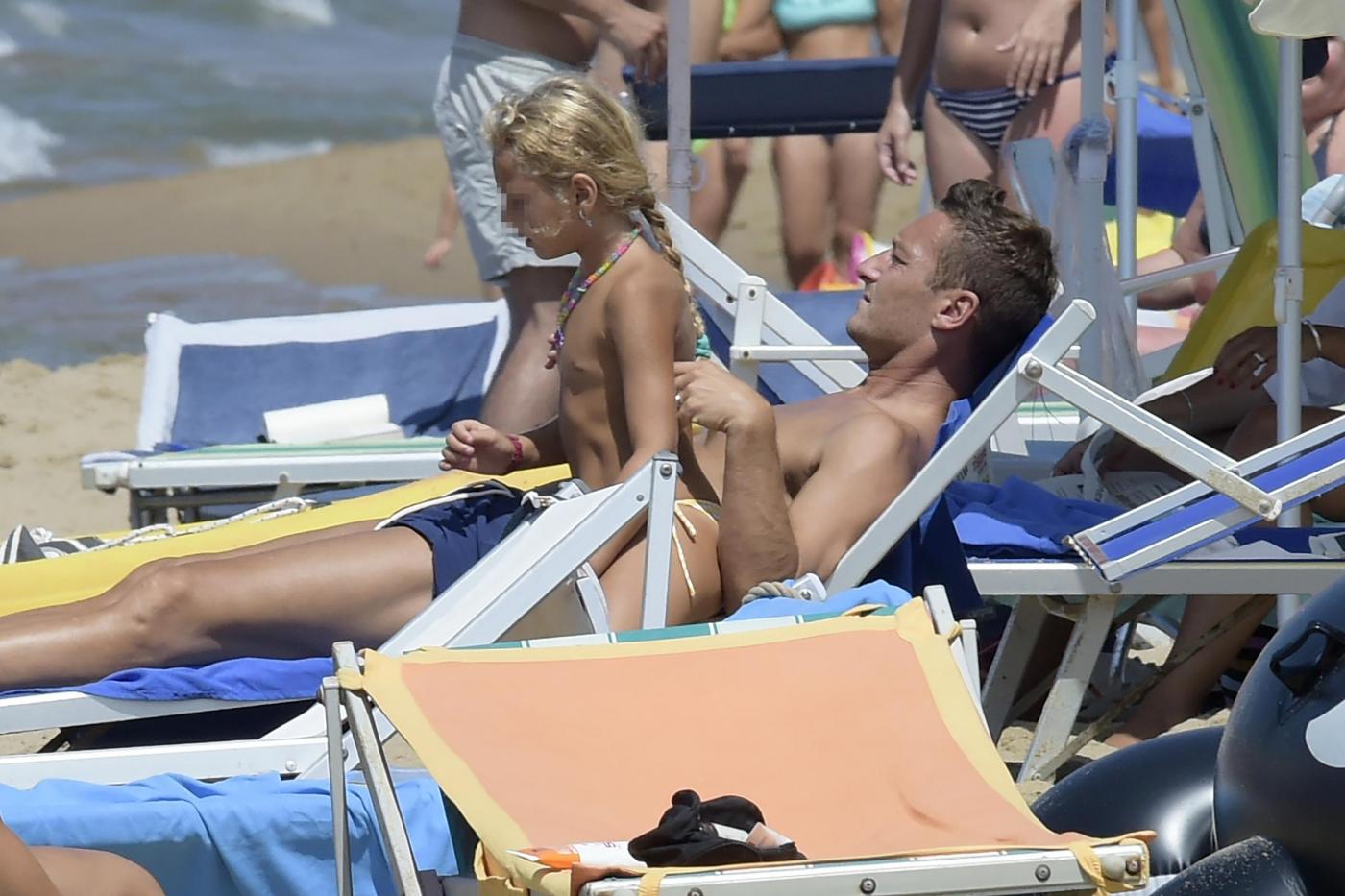 (Foto: La Presse)Foto Mario Cartelli/LaPresse 07/08/2014 Sabaudia ( LT ) - Italia gossip Francesco Totti appena rientrato dalla tounee americana con la squadra, dedica il suo tempo ai figli, in spiaggia si lascia andare a tenere coccole a Chanel e poi la solita partitella con a calcio con Christian per finire con un rinfrescante bagno. Spiaggia di Sabudia, Latina - Italia. Nella foto: Francesco Totti con la figlia ChanelPhoto Mario Cartelli/LaPresse7 August 2014 Sabaudia, Latina - ItaliaGossipFrancesco Totti has just returned from the American tounee with the his team, spends time with familyIn the pic: Francesco Totti with his daughter Chanel