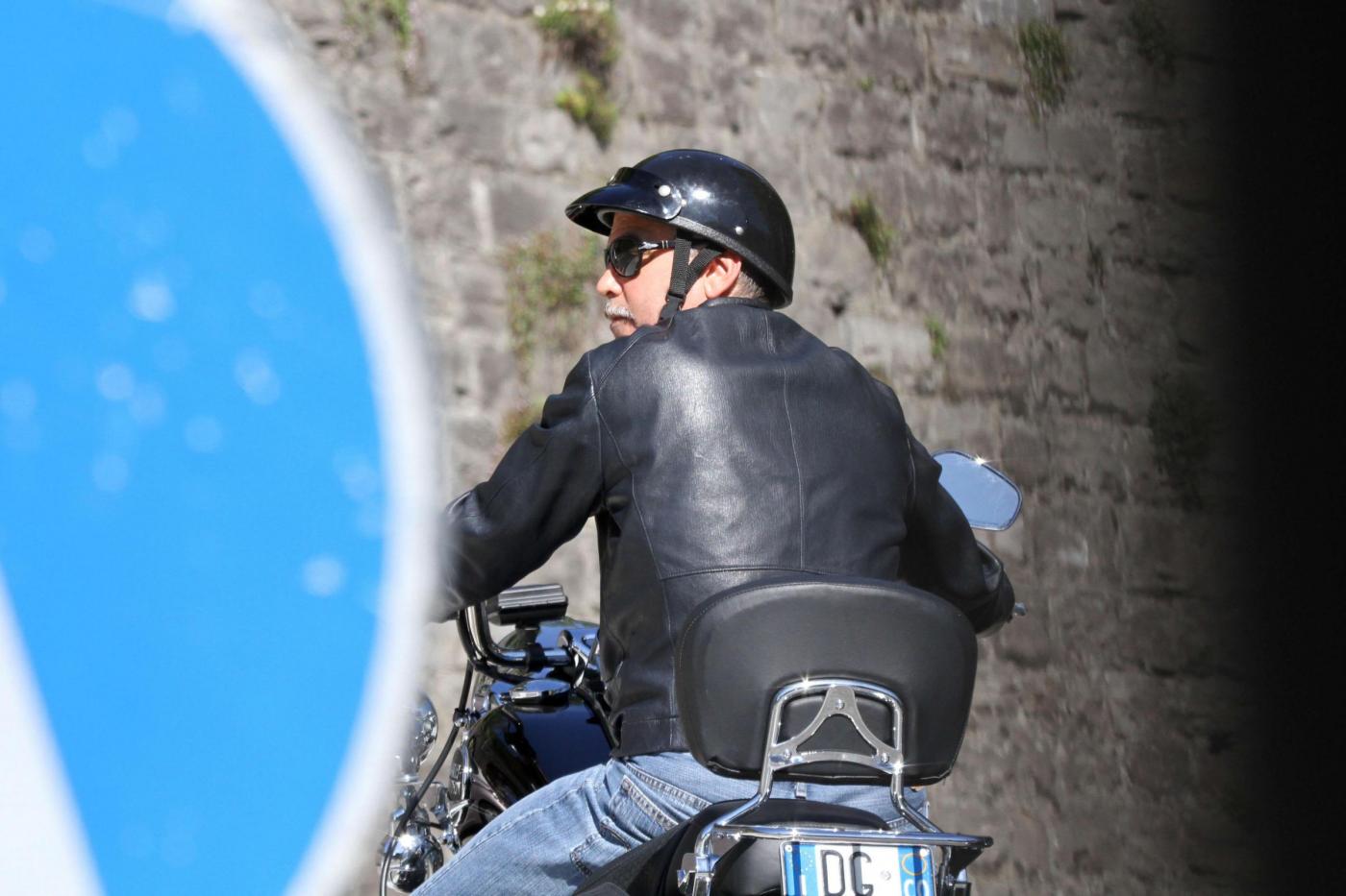 COMO – George Clooney “centauro” su una delle sue numerose Harley Davidson. In occasione del suo compleanno (è nato il 6 maggio), il bel George è stato fotografato sulle strade che costeggiano il Lago di Como, a bordo di una Road King insieme all’amico e sceneggiatore Grant Heslov.