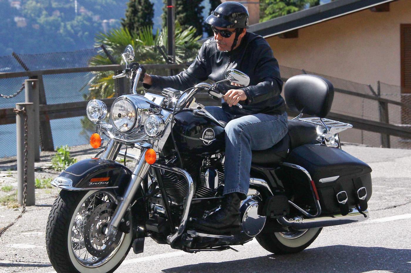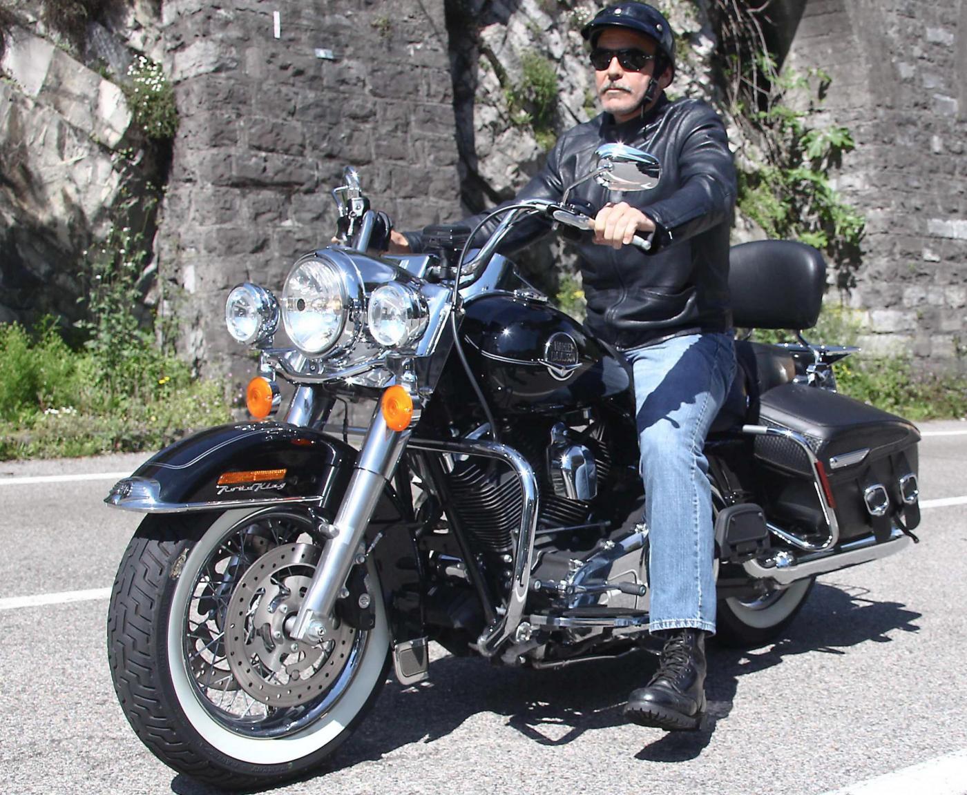 COMO – George Clooney “centauro” su una delle sue numerose Harley Davidson. In occasione del suo compleanno (è nato il 6 maggio), il bel George è stato fotografato sulle strade che costeggiano il Lago di Como, a bordo di una Road King insieme all’amico e sceneggiatore Grant Heslov.