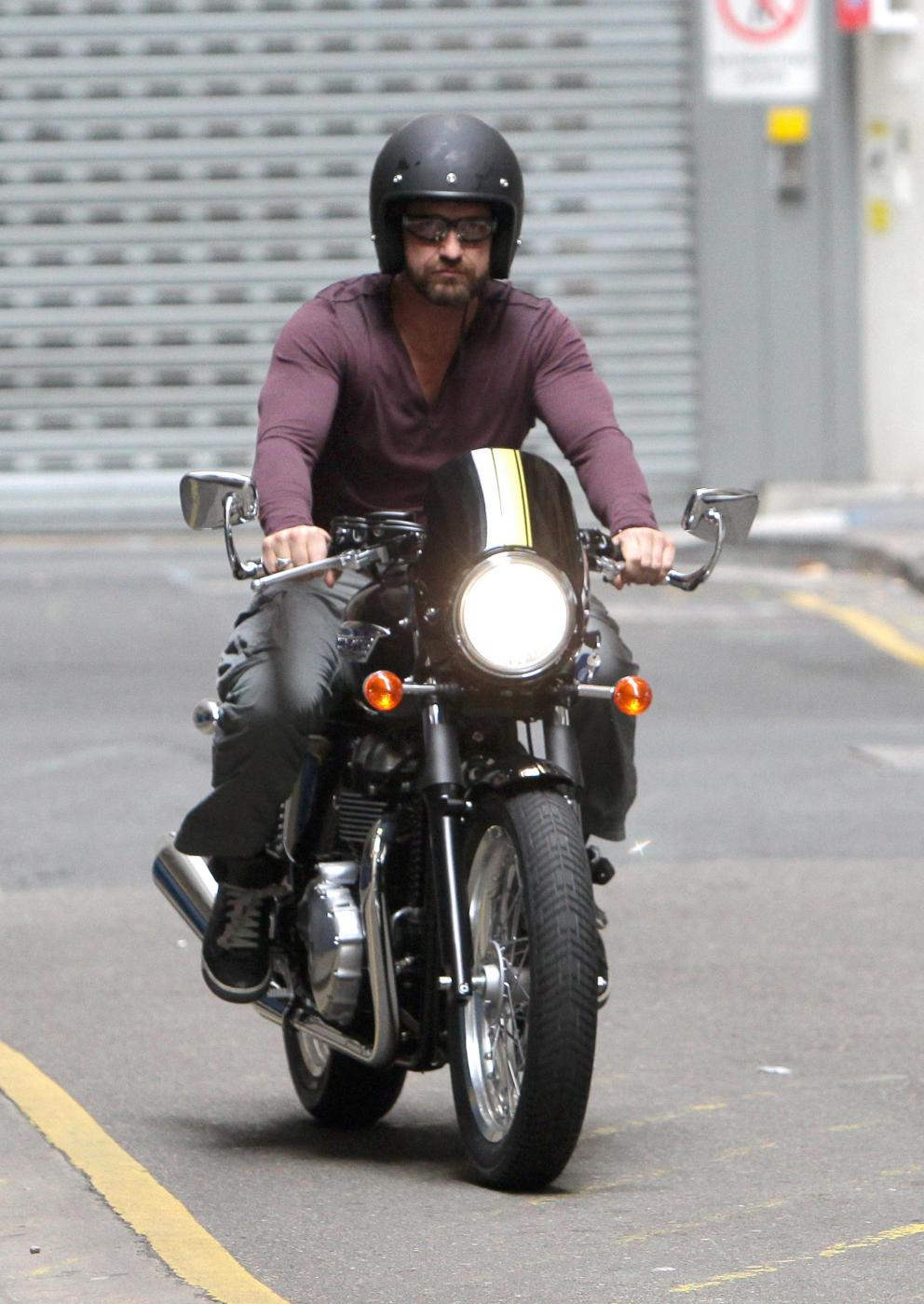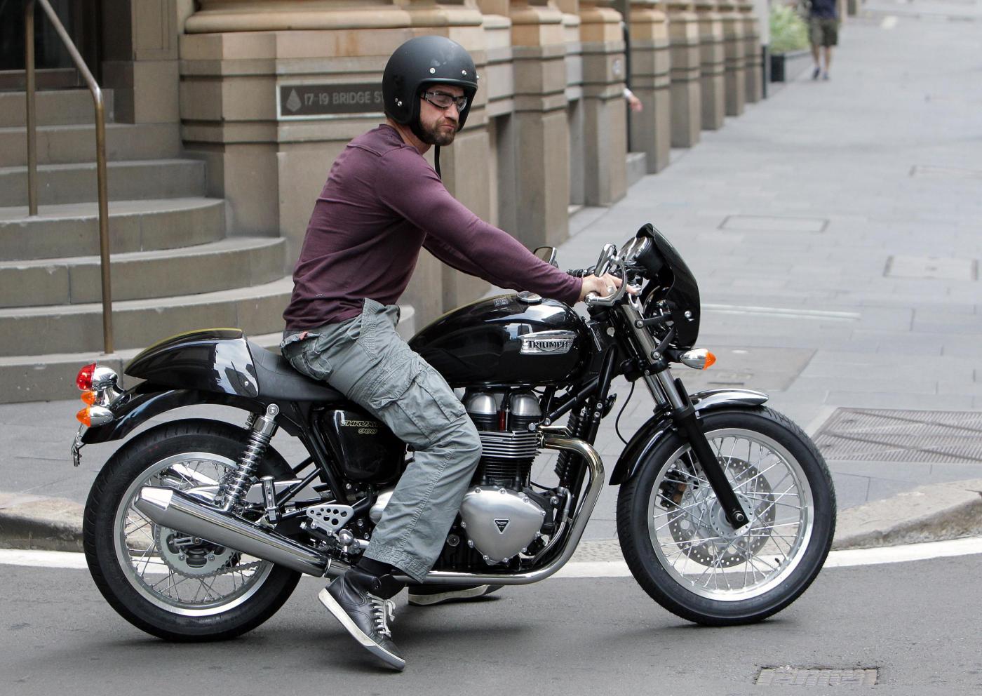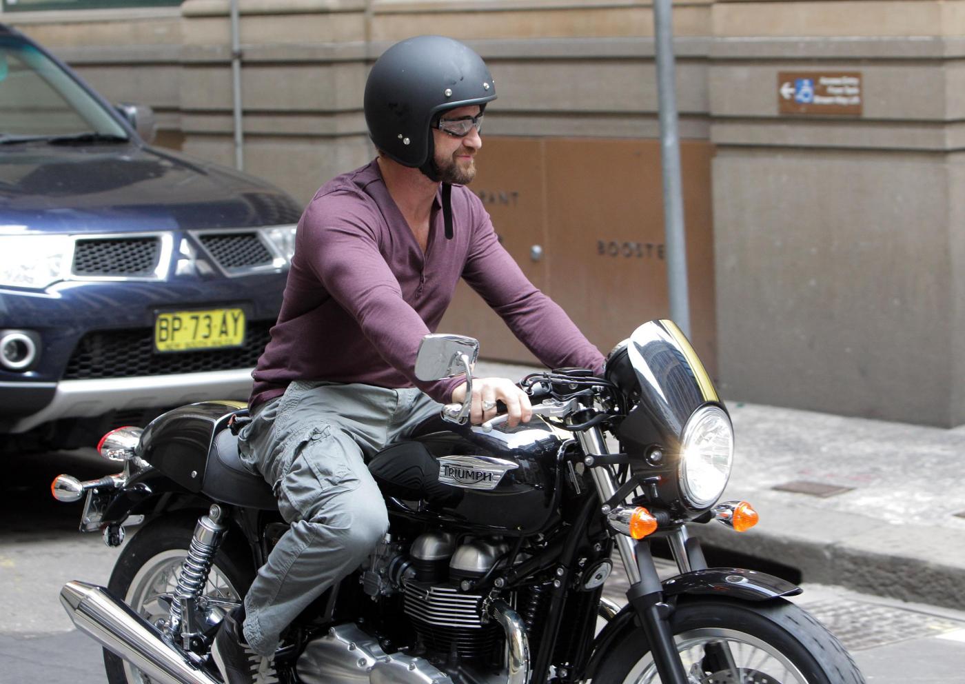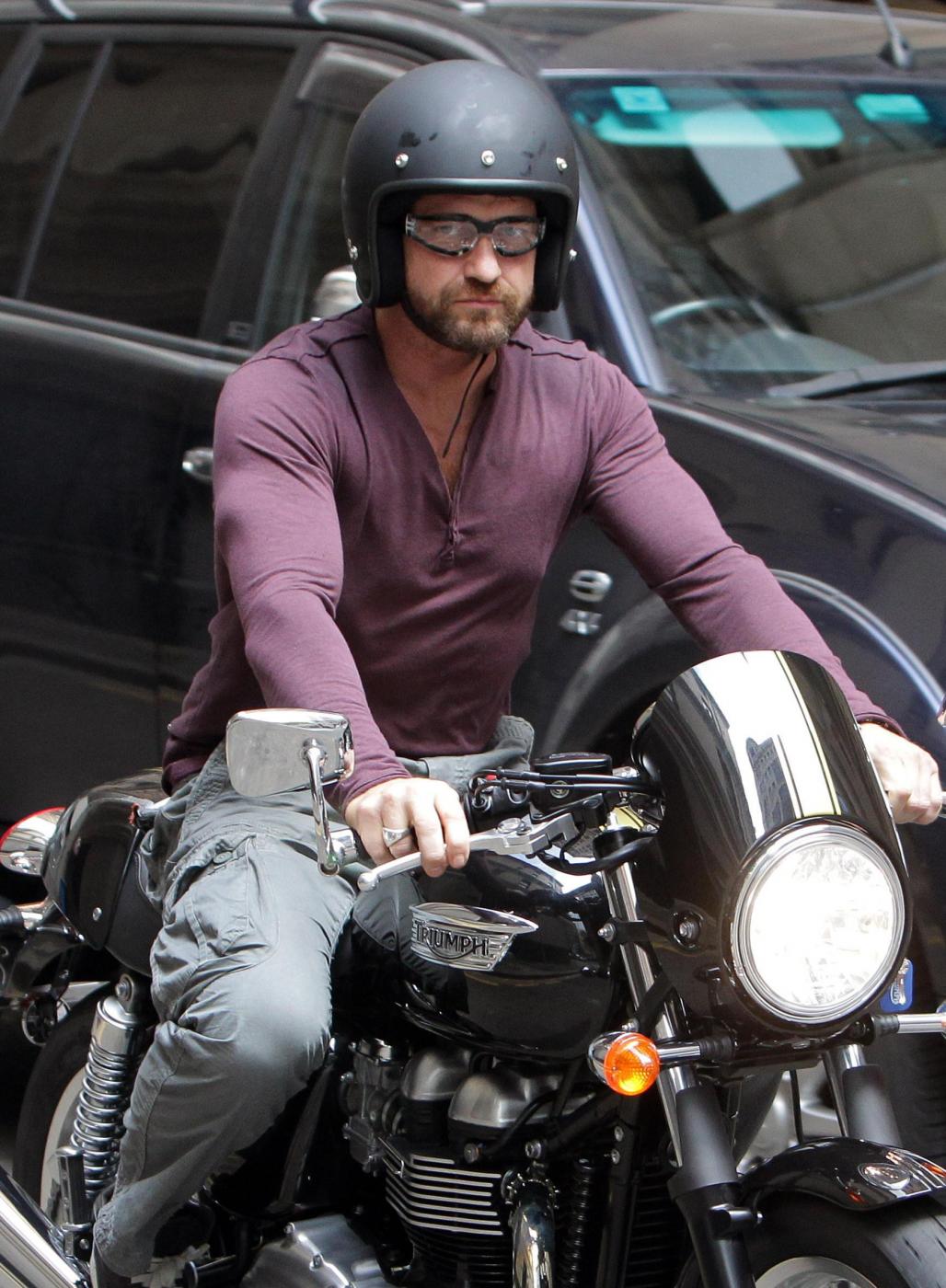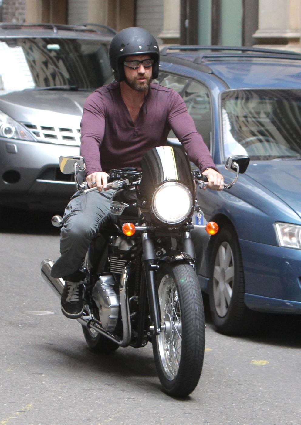 SYDNEY (AUSTRALIA) – L’attore Gerard Butler viene fotografato mentre viaggia per le vie di Sydney a cavallo della sua Triumph Bonneville.
