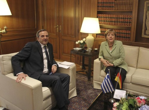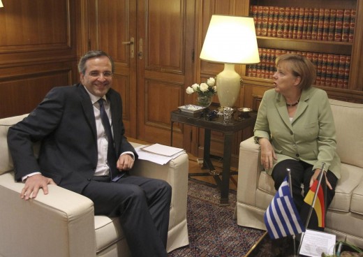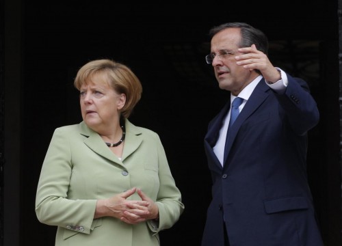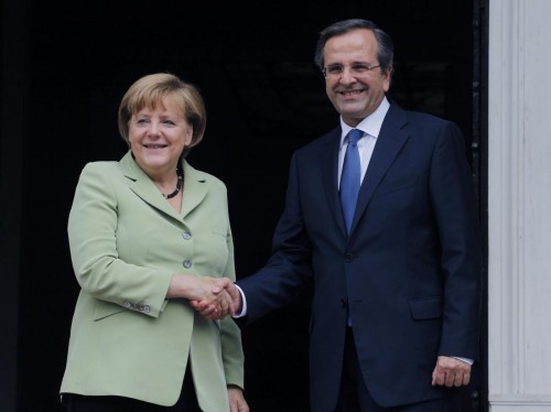 ATENE – Angela Merkel è arrivata martedì 9 ottobre ad Atene ed è stata accolta da proteste in piazza. Come fa notare con una certa malizia la stampa ellenica, il cancelliere tedesco indossa la stessa giacca verde chiaro che indossava la sera del 22 giugno scorso allo stadio di Danzica in Polonia, mentre assisteva alla partita di calcio del campionato europeo tra Germania e Grecia.