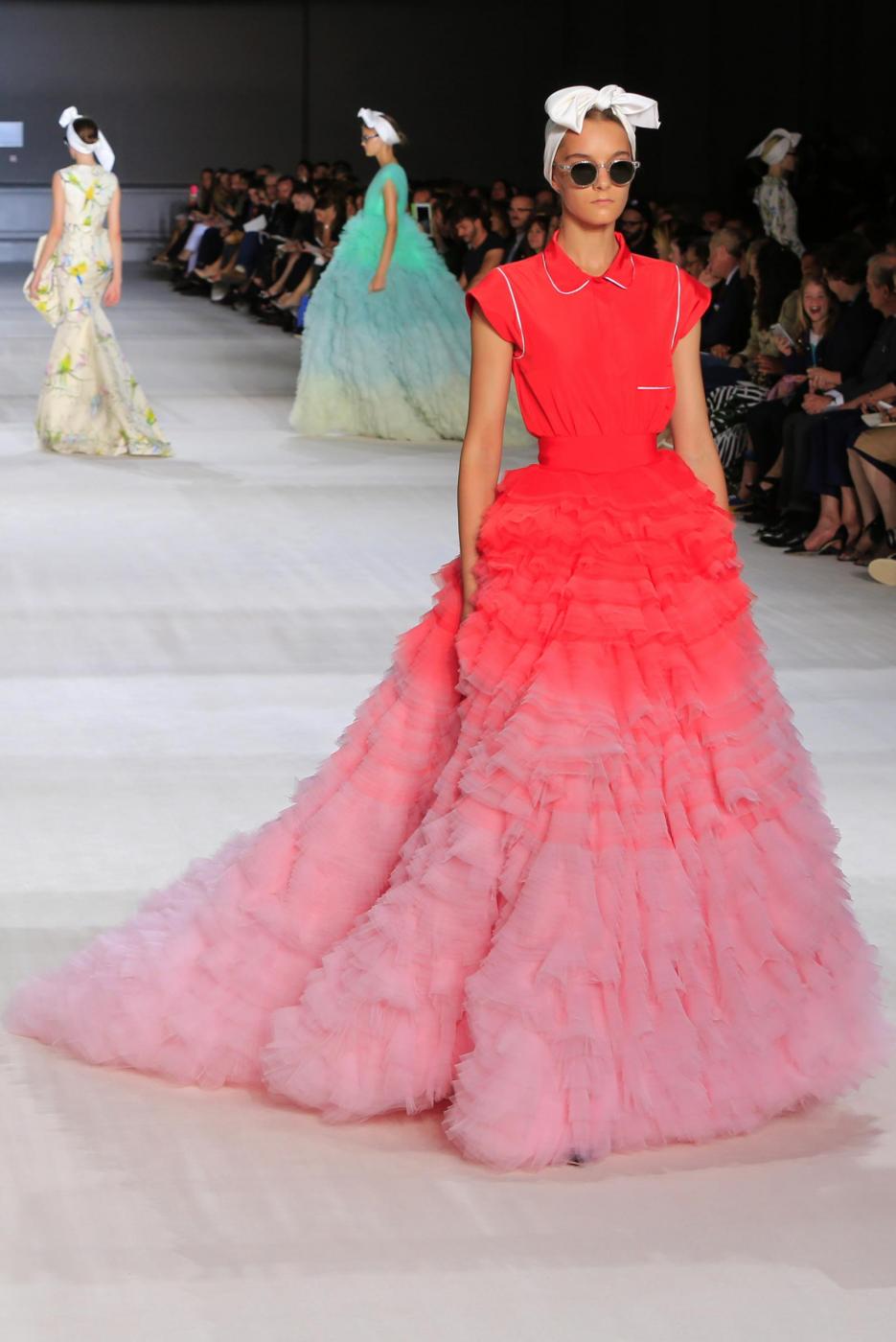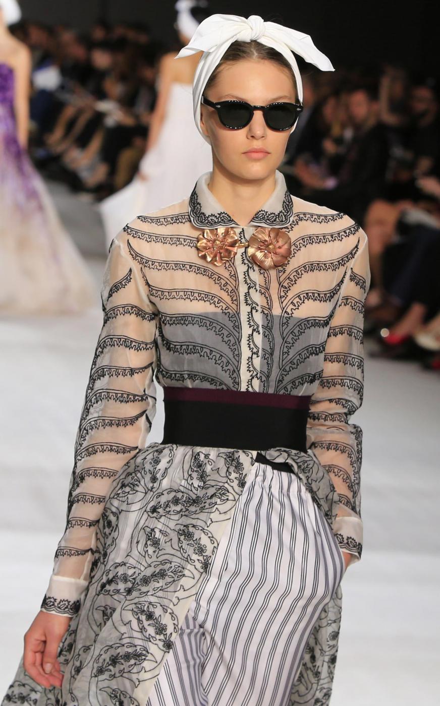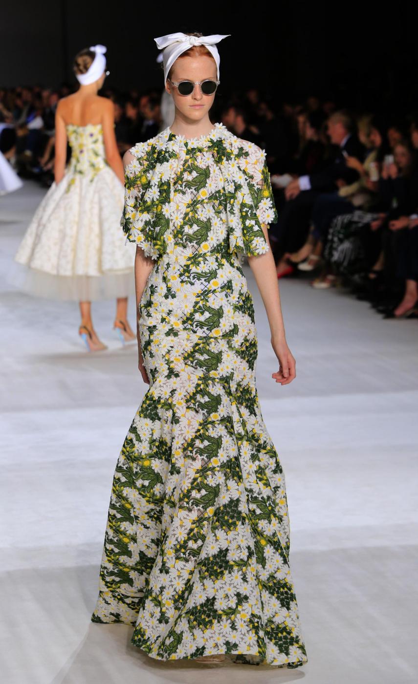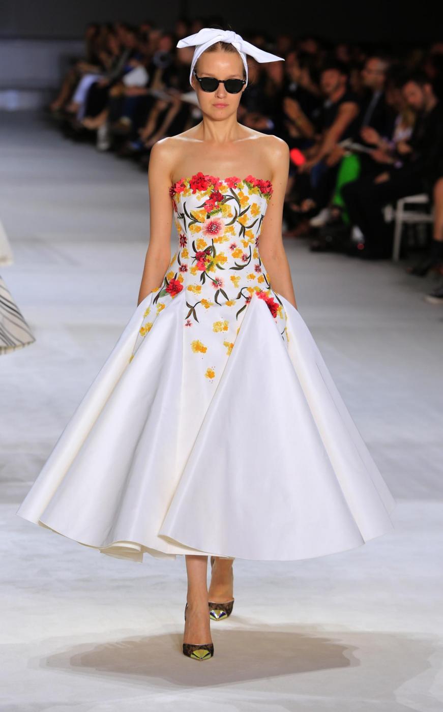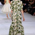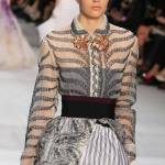 In passerella ha sfilato una donna femminile e romantica, che torna a vestire abiti dai tessuti morbidi e leggeri e dai motivi floreali. La collezione porta il made in Italy nella Ville Lumière e fa un passo indietro nel tempo, scegliendo dettagli precisi e linee anni Cinquanta.