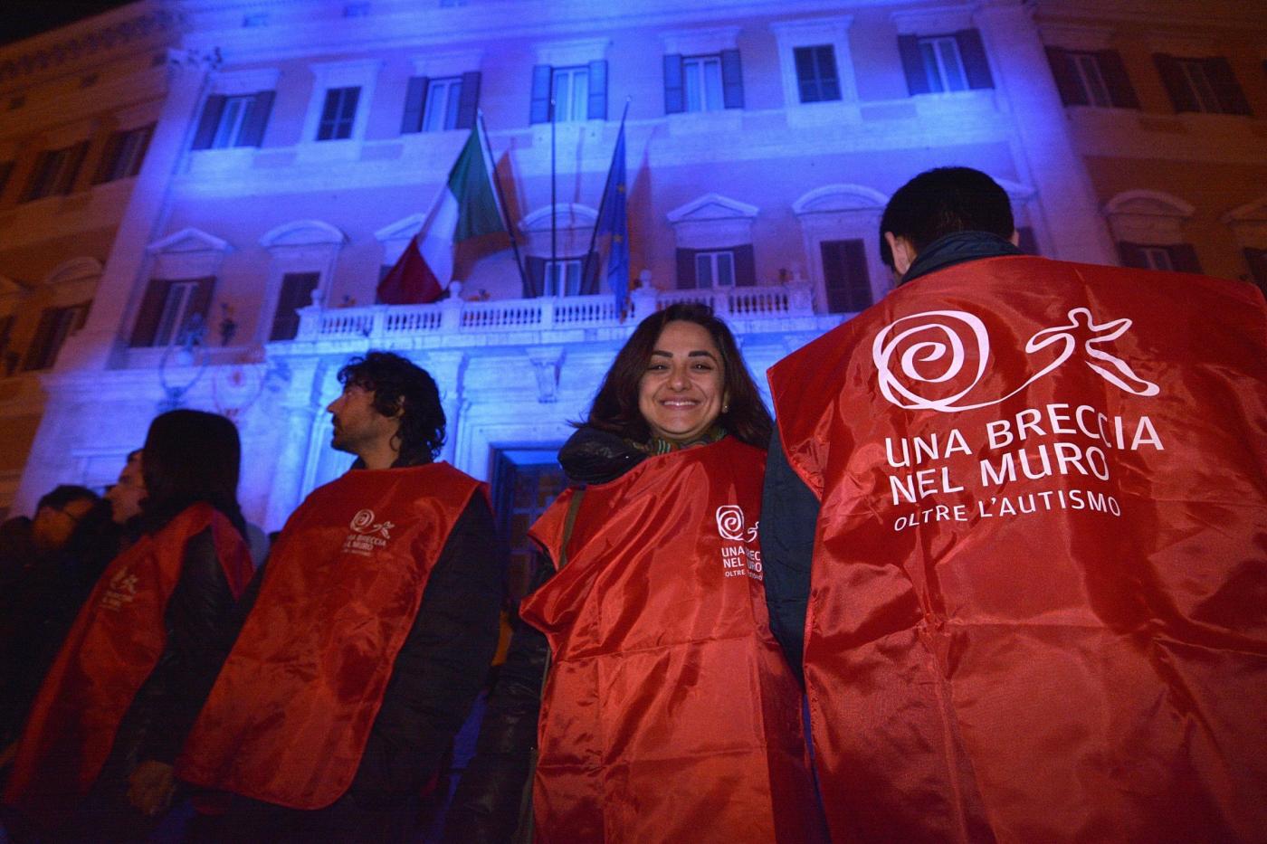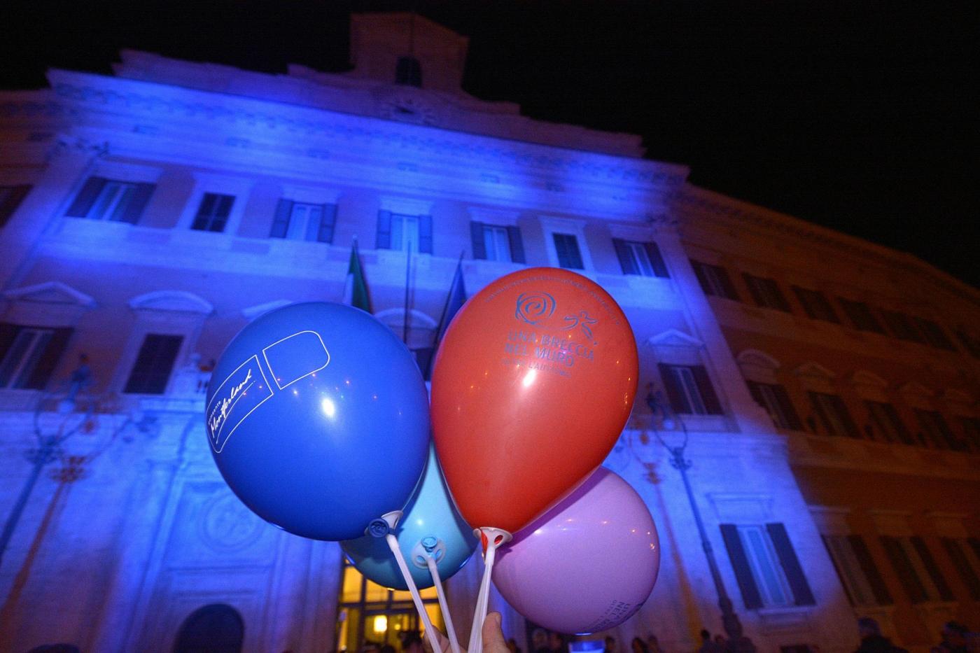 Foto LaPresse Cronaca Roma 01.04.2014 La facciata di Palazzo Montecitorio illuminata in occasione della Giornata Mondiale di sensibilizzazione sull'Autismo; partecipa la presidente della Camera Laura Boldrin, il ministro della salute Beatrice Lorenzin, deputato PD Iliana Argentin