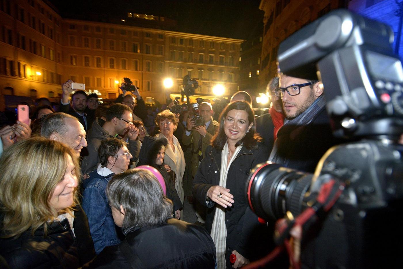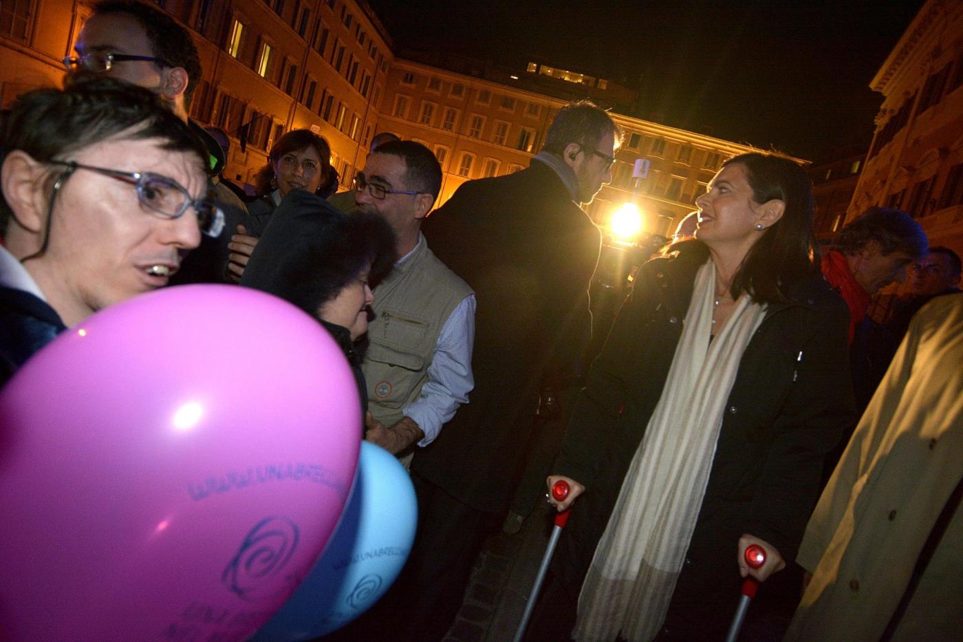 Foto LaPresse Cronaca Roma 01.04.2014 La facciata di Palazzo Montecitorio illuminata in occasione della Giornata Mondiale di sensibilizzazione sull'Autismo; partecipa la presidente della Camera Laura Boldrin, il ministro della salute Beatrice Lorenzin, deputato PD Iliana Argentin. Nella foto, Laura Boldrini