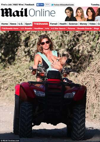 Il mezzo non è certamente il più sicuro per trasportare i figli piccoli. A svelare la modella brasiliana è il MailOnline che pubblica delle foto.