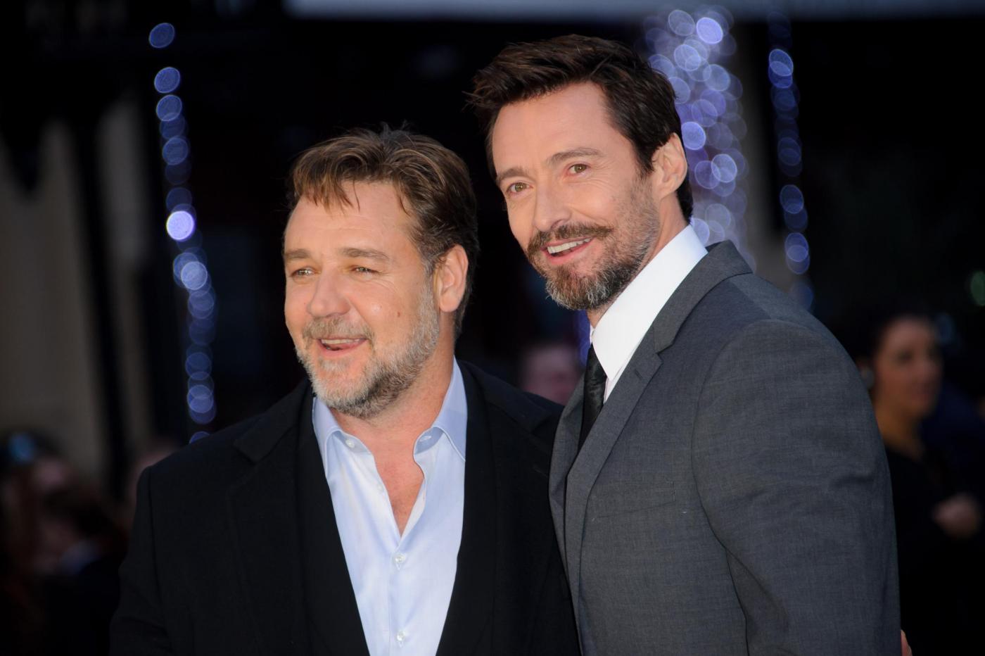 From left, New Zealand actor Russell Crowe and Australian actor Hugh Jackman arrive for the UK Premiere of Noah at a central London cinema, London, Monday, March 31, 2014. (Photo by Jonathan Short/Invision/AP)