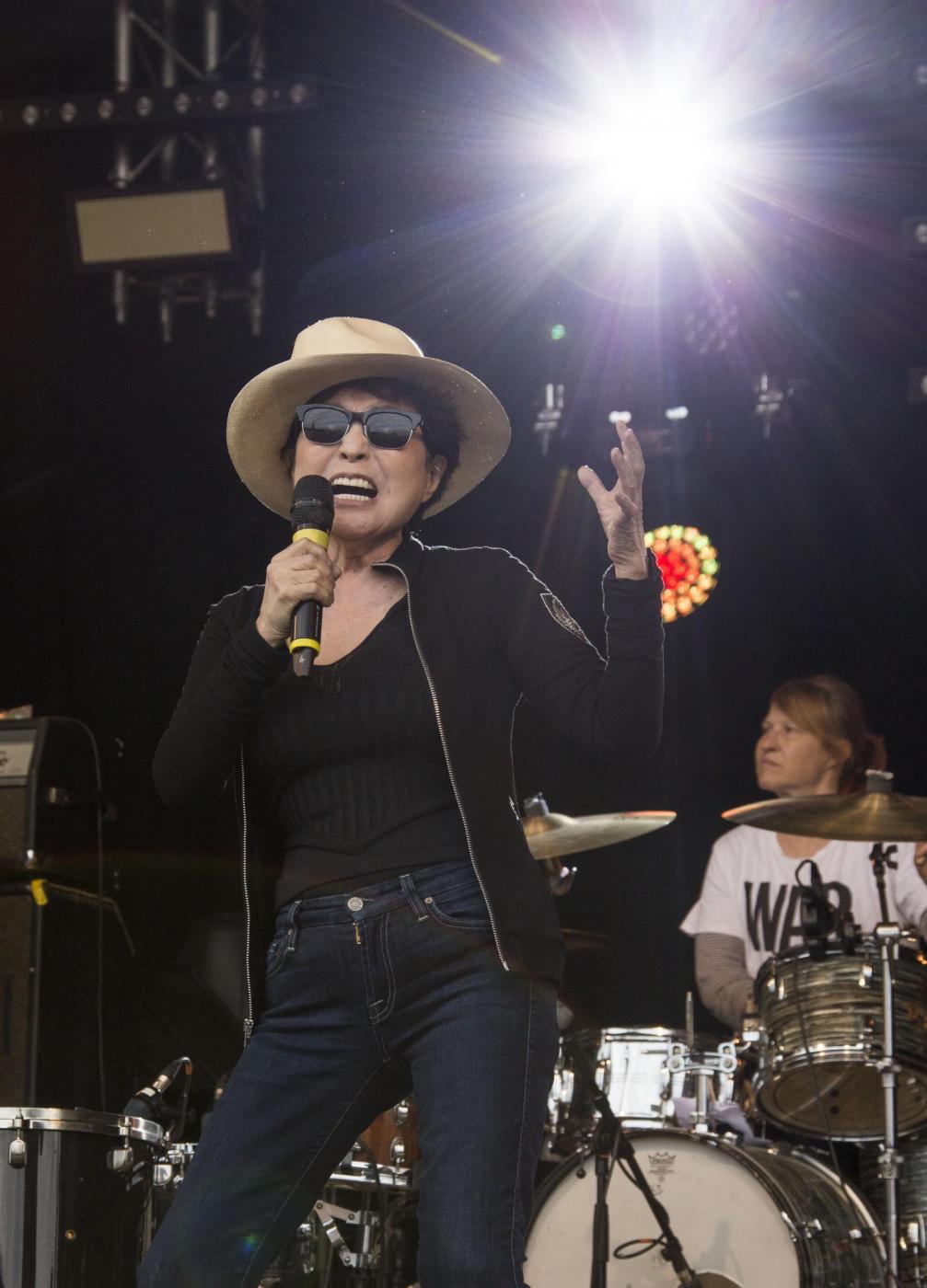 Yoko OnoYoko Ono and the Plastic Ono band perform on the main Pyramid stage at Glastonbury music festival, England, Sunday, June 29, 2014. Thousands of music fans have arrived for the festival to see headliners Arcade Fire, Metallica and Kasabian. (Photo by Joel Ryan/Invision/AP)