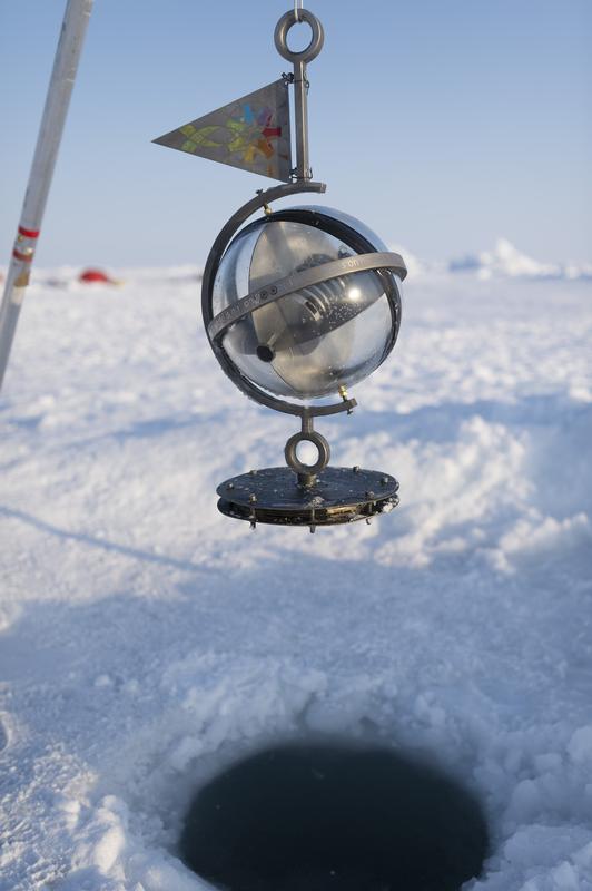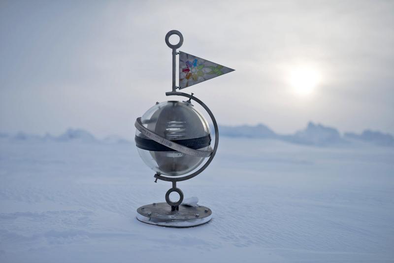 13th April 2013 - Detail of the time capsule photographed at the North Pole. A flag is attached to a glass and titanium time capsule containing the signatures of nearly three million people, including actors, musicians, artists and business leaders is planted on the seabed beneath the North Pole. Greenpeace is calling for the region, currently under threat from climate change, oil companies, industrial fishing and shipping to be declared a global sanctuary and free from exploitation.