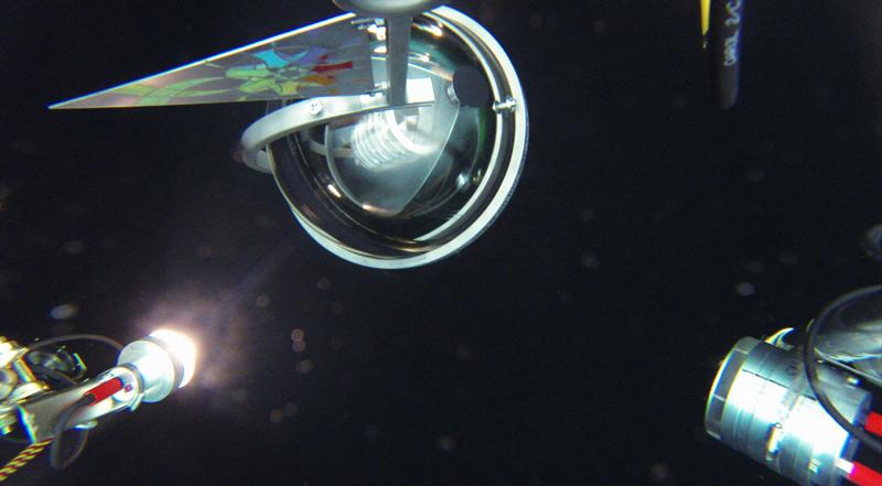 14th April 2013 - North Pole, Arctic - Underwater picture showing a time capsule lowered to the seabed at the North Pole. A flag is attached to a glass and titanium time capsule containing the signatures of nearly three million people, including actors, musicians, artists and business leaders is planted on the seabed beneath the North Pole. Greenpeace is calling for the region, currently under threat from climate change, oil companies, industrial fishing and shipping to be declared a global sanctuary and free from exploitation.