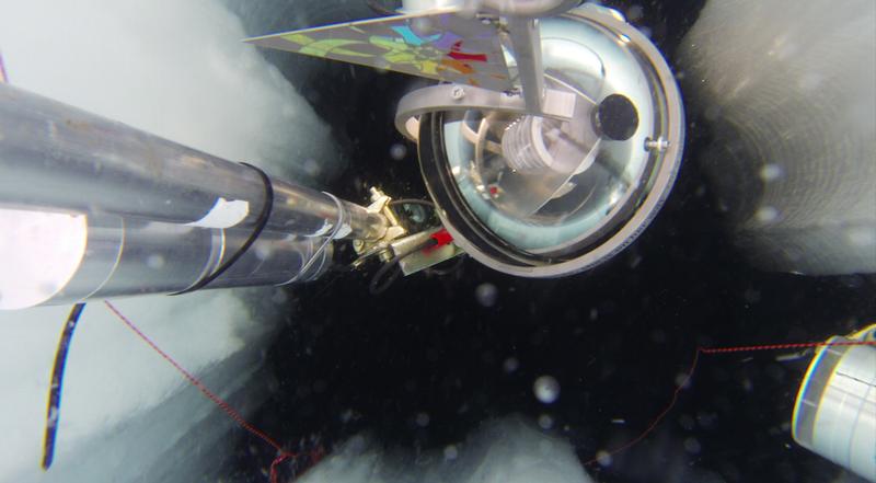 13th April 2013 - The time capsule lowered into the icy waters at the North Pole. A flag is attached to a glass and titanium time capsule containing the signatures of nearly three million people, including actors, musicians, artists and business leaders is planted on the seabed beneath the North Pole. Greenpeace is calling for the region, currently under threat from climate change, oil companies, industrial fishing and shipping to be declared a global sanctuary and free from exploitation.
