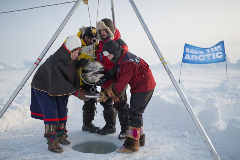 Insieme ai rappresentati delle comunità indigene dell’Artico, con questo gesto gli attivisti hanno simbolicamente reclamato l’area come patrimonio di tutta l’umanità, chiedendo l’istituzione di un Santuario Globale per la protezione dell’Artico. All’interno della capsula ci sono i quasi tre milioni di nomi di coloro che, in ogni parte del mondo, hanno firmato per difendere l’Artico dalle esplorazioni petrolifere e dalla pesca industriale ed eccessiva. Una telecamera installata sulla capsula ha registrato le immagini della discesa sul fondale. Tra i membri della spedizione anche Ezra Miller, attore statunitense (Io sono infinito) che nel corso della cerimonia ha dichiarato: “Piantando questa bandiera speriamo di ispirare all’azione i giovani di tutto il mondo, così come i loro governi, affinché proteggano l’ultimo paradiso incontaminato del Pianeta. Siamo qui per dire che quest’area dell’Artico non appartiene né a governi né a multinazionali, ma è patrimonio comune dell’umanità e che le compagnie petrolifere non possono metterlo in pericolo”.