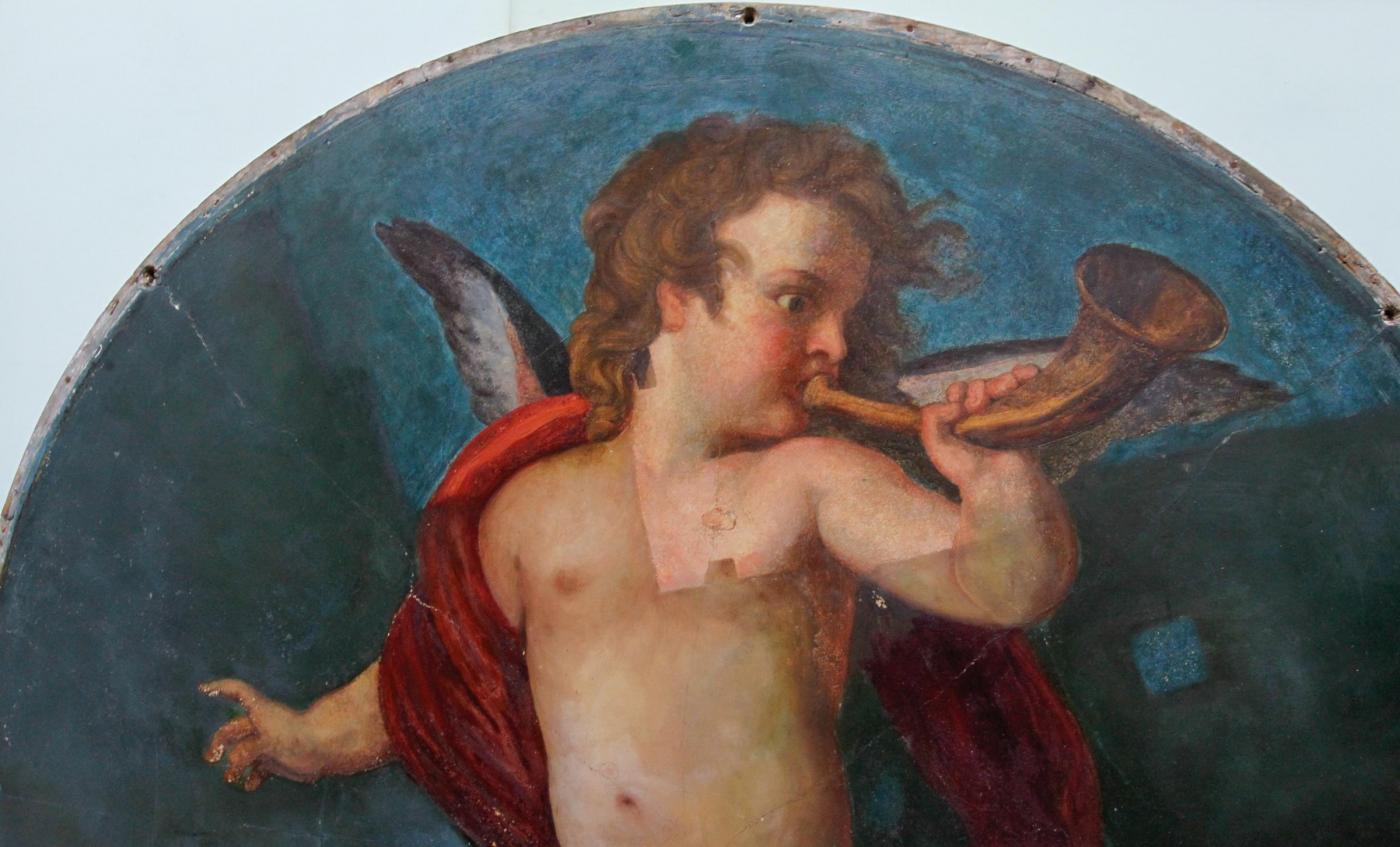 HANOVER (GERMANIA) – Alcuni ricercatori tedeschi dell’Università di Hannover, stanno identificando il dipinto “Der trompetende Putto” per capire se appartenga o no a Gustav Klimt. Il dipinto, scovato l’estate scorsa in un garage in Austria, è realizzato su una tela particolare, misura 1,70 metri di diametro e raffigura un angelo che suona la tromba.
