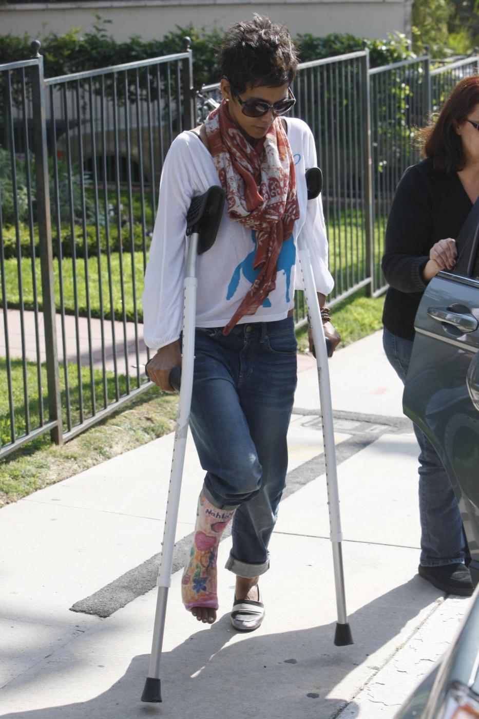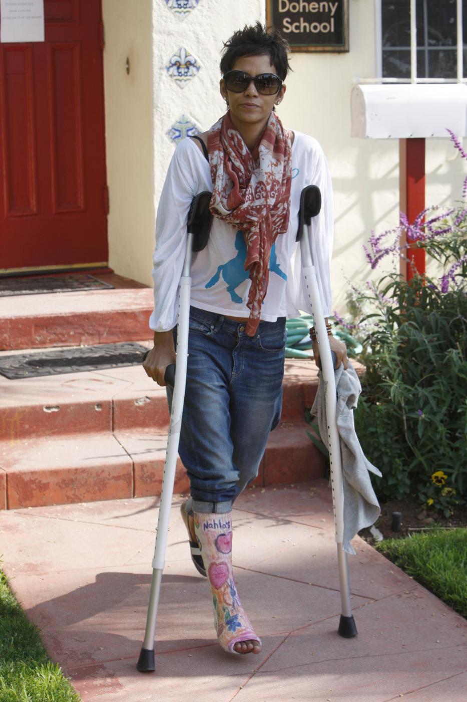 Halle Berry accompagna la figlia a scuola con le stampelle
