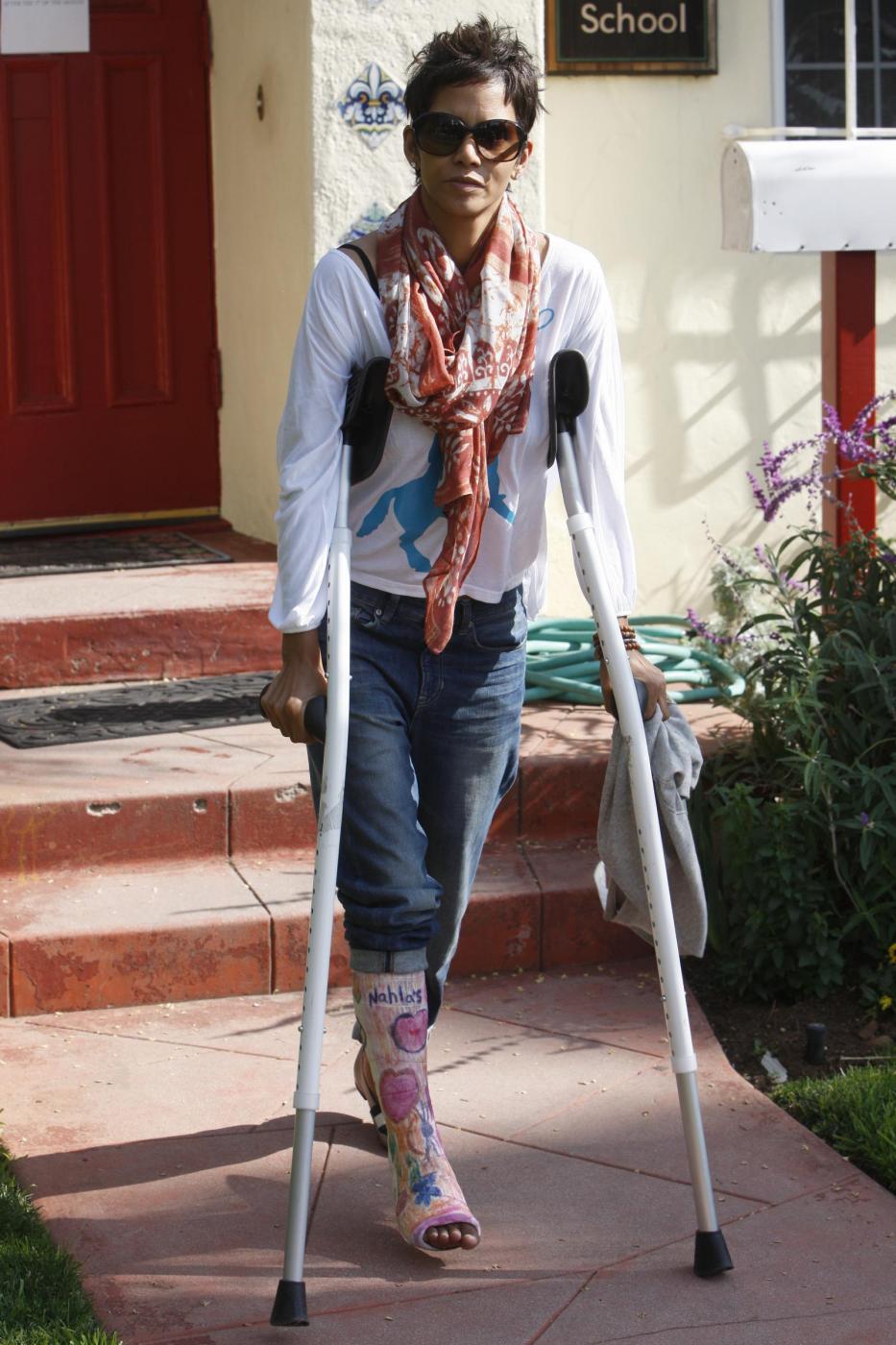 LOS ANGELES – Halle Berry ha accompagnato a scuola con le stampelle la figlia Nahla a Beverly Hills. L’attrice si è infortunata ad un piede durante le riprese di “Cloud Atlas”, film in cui la Berry recita accanto a Tom Hanks (foto Ap/LaPresse):